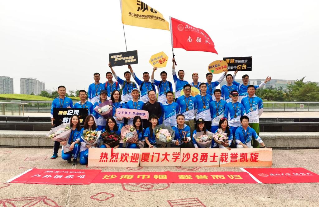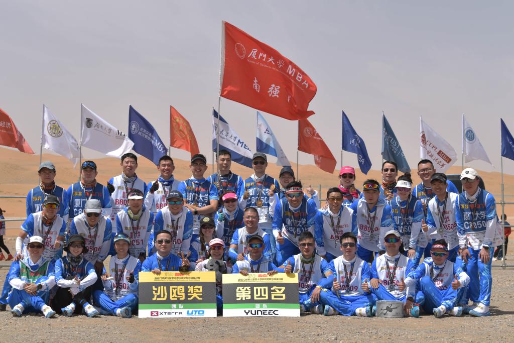 厦门大学MBA中心从01级校友到19级新生组建南强战队,管理学院党委副书记洪秋霞老师和MBA中心主任屈文洲教授亲自带队,凭借强大的综合实力和为厦大荣誉而战的坚定信念,在烈日炎炎、风沙飞扬的腾格里沙漠奋力奔跑,最终不负众望在众多实力强大的院校中脱颖而出,荣获团体第四名,女子个人第六名,赛事最高荣誉奖沙鸥杯的创历史佳绩。厦门大学MBA南强队将厦大人自强不息,止于至善的精神带到腾格里,厦大人团结协作的精神在这里传承。3天,70公里,AB队队员拼尽全力,毫无保留,全员赛出了最佳状态。33公里,C队队员不仅全员完成了33km挑战,还是最强服务战队,每天中午在到达营地后,为团队搭帐篷,打饭、提水、领水果,拍摄记录精彩瞬间,任劳任怨的工作给予全队最好的后勤保障,完美铸就了厦门大学MBA南强队夺得历史佳绩。 “厦大厦大,沙海争霸;南强南强,数我最强”的口号响彻腾格里。