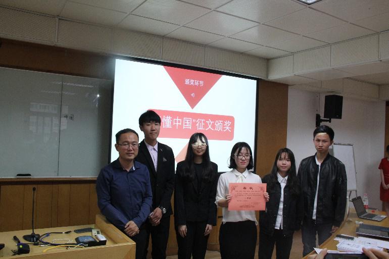 2019年5月10日下午16时30分,由管理学院党委主办的“读懂中国”系列活动颁奖仪式在嘉庚一504举行。管理学院党委副书记戴蓥,团委书记江娇,团委副书记吴荣梅、吴光锡,辅导员揭上锋及学院学生骨干出席了本次活动。