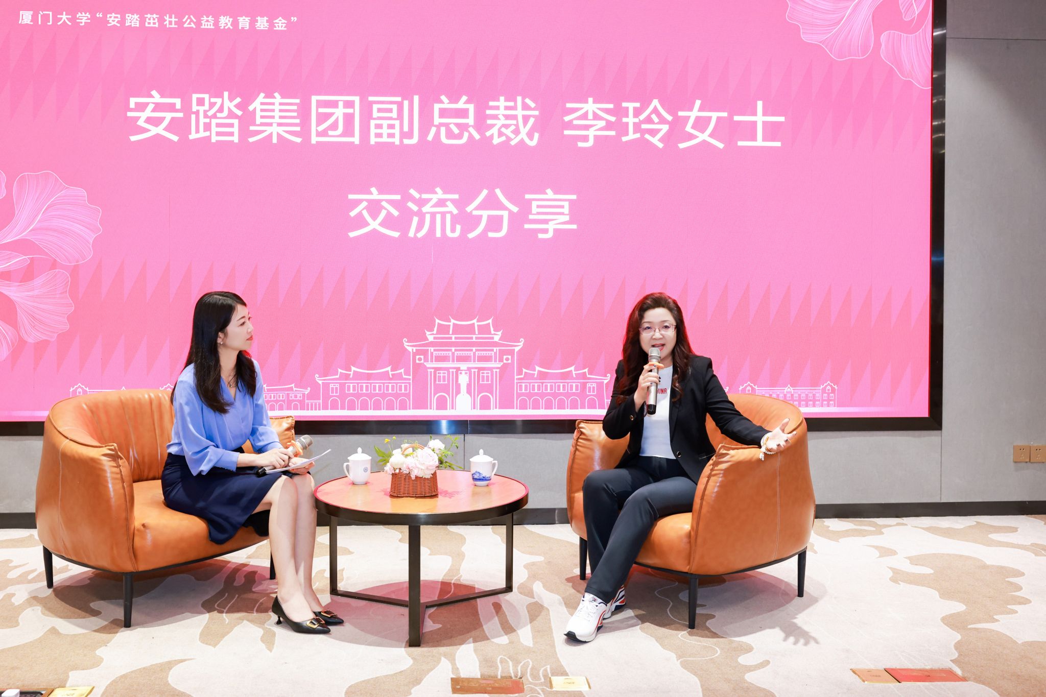 仪式后,李玲与现场师生深入交流,寄语青年要肩负成长与责任。她谈道,安踏集团从1991年起步并发展为全球第三大体育用品集团,其核心动力正是“超越自我”的信念与“做世界的安踏”的拼搏创新精神。这种精神与“嘉庚精神”同频共振,彰显出坚定的奋斗信念与深厚的家国情怀。她认为,大学生即将成为社会的中流砥柱,更应传承“敢想敢为”的创新思维和“永不止步”的韧性,涵养“扎根中国,放眼世界”的格局。针对即将步入职场的毕业生,她特别指出,企业不仅看重大学期间的表现,而且看重其超越自我的信念、创新意识和团队协作能力。