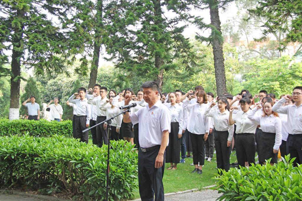 6月30日早上,为庆祝中国共产党建党98周年暨我校罗扬才烈士英勇就义92周年,学校在罗扬才烈士雕像前举办了新党员入党宣誓仪式,校党委副书记、副校长李建发主持仪式。管理学院2019年全体新入党学生党员及辅导员代表参加了本次活动。