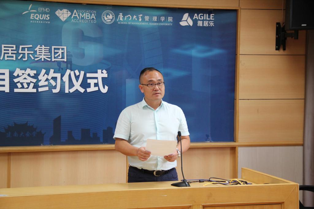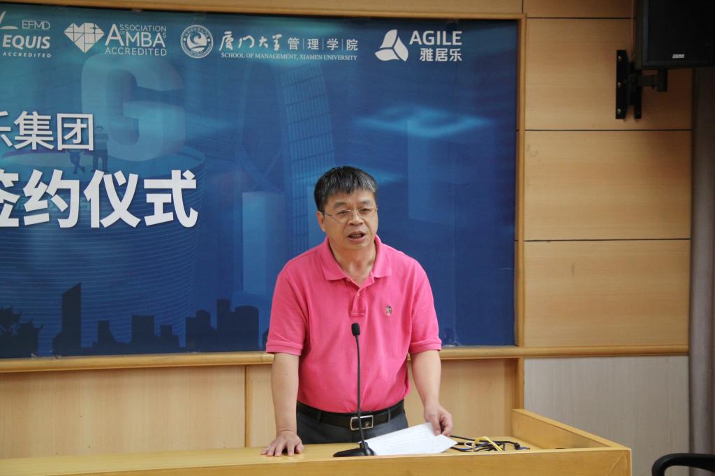 会议伊始,学院党委邱七星书记致辞,他表示,作为由著名企业家、爱国华侨领袖陈嘉庚创办的厦门大学,在建立伊始就注入了校企合作办学、培养专门人才的天然基因,此次校企合作协议的签署,正是与校主倾资办学精神的一脉相承,特别感谢雅居乐集团对于高等教育发展一如既往的支持,对于雅居乐集团在业务发展的同时积极捐资助学的社会责任感表示赞赏。最后邱书记以雅居乐集团的发展历程为例,总结了中国企业家 “爱拼才会赢”、“感恩与奉献”、“底气与自信”三种精神,来勉励青年学子不忘拼搏初心、永葆感恩情怀和坚定道路自信。