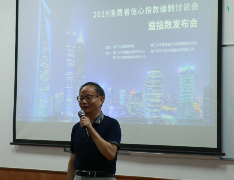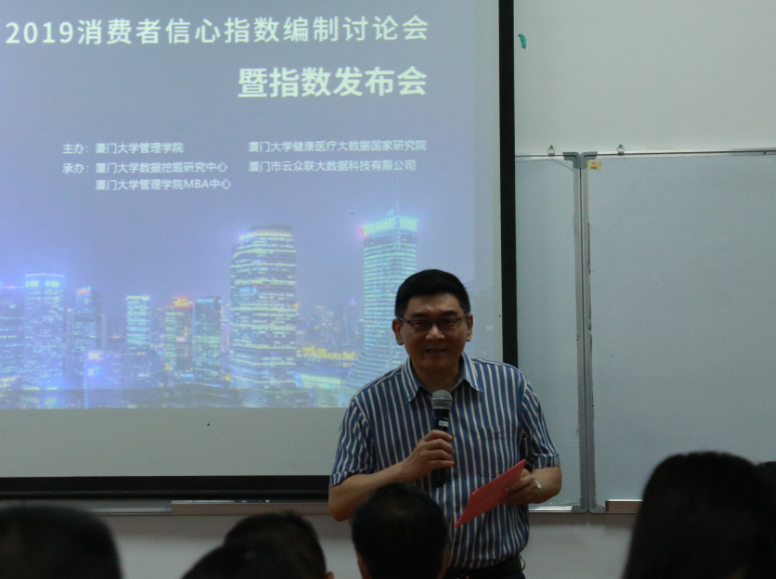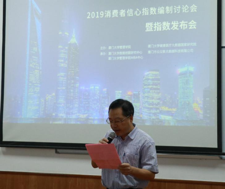 上午9时整,“2019年消费者信心指数编制讨论会暨指数发布会”于厦门大学嘉庚一106室准时开幕,由厦大数据挖掘研究中心郑陈璐主持,参会嘉宾有: