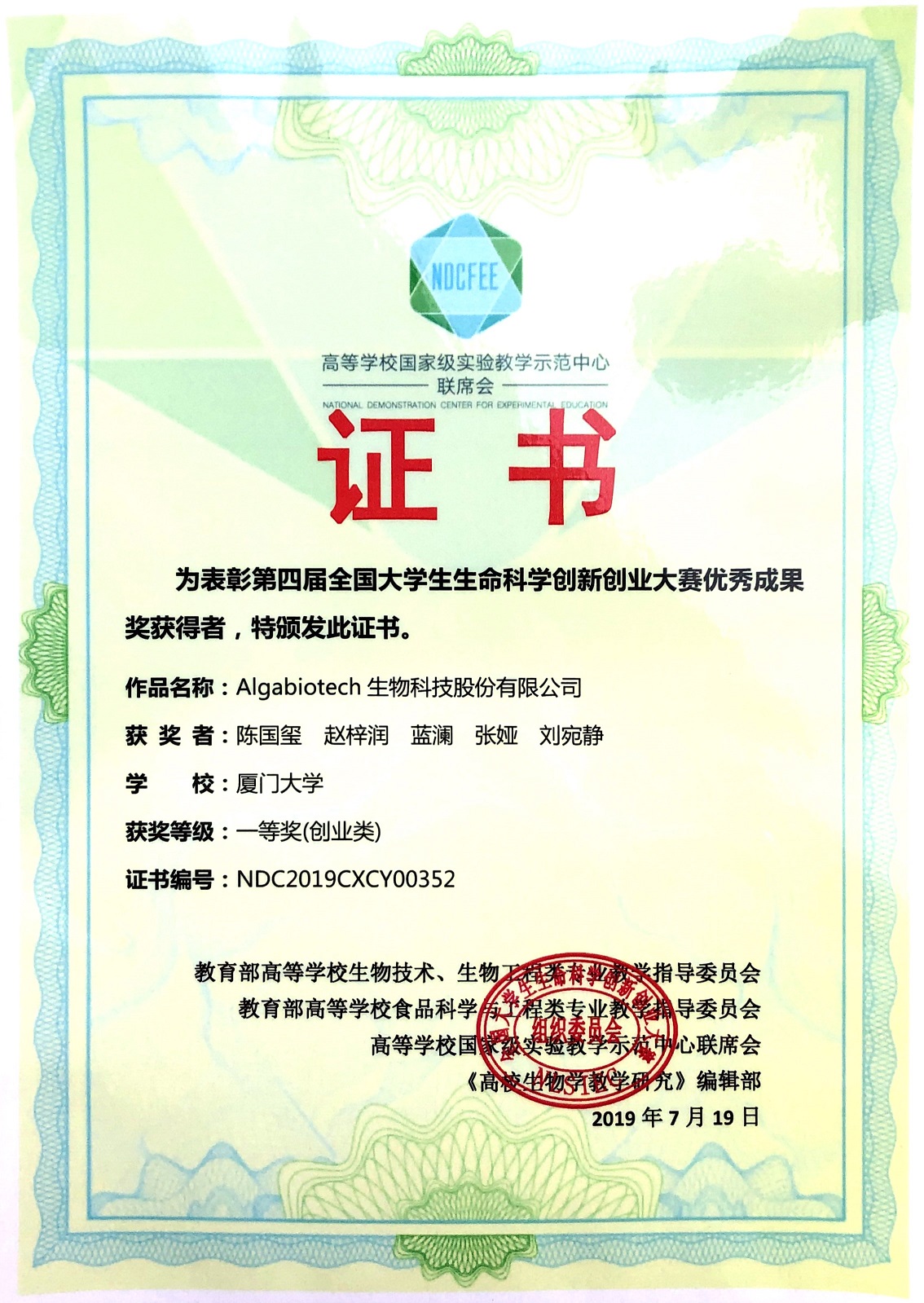 此次大赛,我院财务学系刘宛静、张娅,会计学系蓝澜同学参与的《Algabiotech生物科技股份有限公司》项目在公开决赛中荣获全国一等奖。公司在目前提取叶黄素面临成本高、难度大、纯度低的市场背景下,以厦门大学化学化工学院生物化工研究所邵文尧工程师牵头研发的“泡沫分离技术”作为公司核心技术,利用自主设计的泡沫分离机,分离获取大量高活性高浓度栅藻,并结合现有技术手段从栅藻中提取低成本高纯度的叶黄素,助力中国医药事业。一次次紧锣密鼓的小组讨论,一个个忙着修改策划与模拟答辩的夜晚,荣誉的背后是汗水的辛劳,是不为人知的付出。最终,在决赛现场团队以创新型的技术、完备的策划、生动的展示和现场逻辑严密的答辩征服了评委和观众,不负众望、载誉而归。张娅同学表示,在这次比赛中感受到了各所高校学生将生命科学领域的科研项目与创新创业的高度结合,感受到了双创背景下大学生的时代风貌!