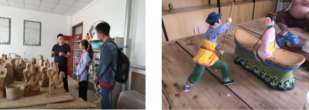 同时,队员们也对隆德县当地的非遗文化进行了调研。隆德县非遗文化深厚渊远,目前隆德县已有四个国家级非遗项目,且还有一百多个正在申报的非遗项目。实践队员们特别参访了——杨氏彩塑、魏氏砖雕两项国家级非遗项目。向杨氏彩塑传承人杨佳年先生、魏氏砖雕传承人魏亚龙先生分别了解了两项非遗项目的发展现状、发展中遇到的困难,并与他们共同探讨了非遗文化如何与红色旅游共同发展、相互促进。