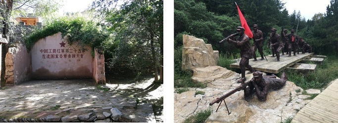 “六盘山上高峰,红旗漫卷西风。” 位于隆德县的六盘山是红军长征翻越的最后一座大山,六盘山红军长征景区是首批中国100个经典红色旅游景区。实践团抵达隆德后,首先就对这一重要的红色旅游景点进行了调研。到达六盘山红军长征景区后,实践团成员们选择追寻红军长征走过的路线,沿着“红军小道”徒步登上六盘山。2.5公里的“红军小道”,复原了二万五千里长征路上发生的重大事件场景:“血战湘江”、“飞夺泸定桥”等等。参观着这些微缩景观,远望四周的崇山峻岭,队员们更加深刻地感受到了长征的艰险与不易。两个小时的山路过后,队员们终于来到了六盘山红军长征纪念馆。在纪念馆中,队员们参观了馆内陈列的红军长征时留下的草鞋、武器等文物;阅读着红军与当地百姓、回族同胞融洽相处并受到爱戴的故事;观看着央视《长征》纪录片,听到一位位老兵讲述着自己长征路上逝去的战友、走过的艰难险阻,队员们无一不被长征的精神所感动。在调研路途中,队员们还对前来参观的游客进行了采访,真实地了解到了游客们对该景区的看法。