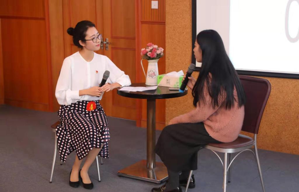 “谈心谈话”环节中,高瑜聪抽中“毕业生择业选择”主题案例,与助演学生现场展开沟通。“独自闯过‘考研’这一难关,读研期间在导师指导下完成许多课题,你并没有自己想得那么弱!”“学校的就业指导中心网站有专门的职业性向测试,可以通过它来给自己的职业选择做个参考。”“追求物质财富没有错,但任何收获都要靠努力奋斗取得,要做好拼搏的准备哦!”……8分钟的谈心谈话,高瑜聪较为顺利地打开学生心结,引导学生正确看待择业、寻找方法精准准备就业,圆满结束所有比赛环节。