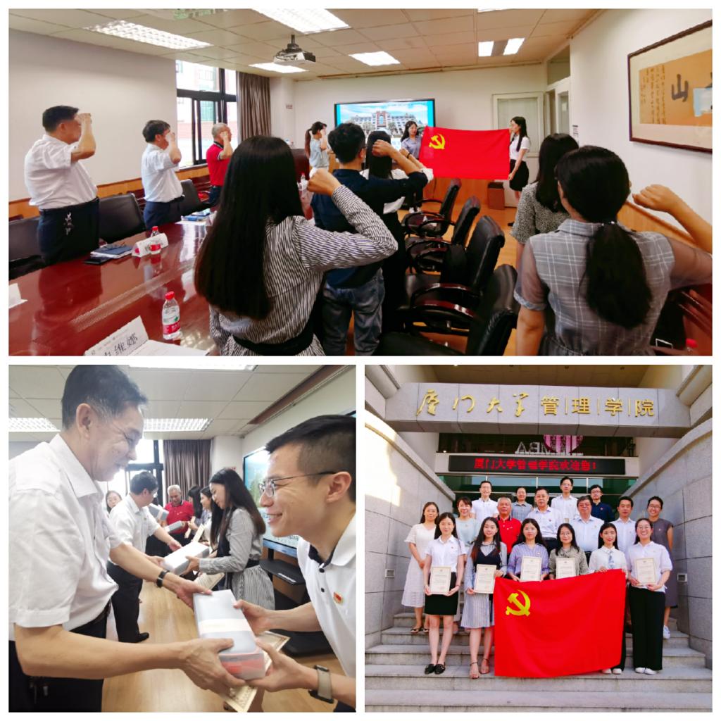 “厦门大学是一所与中国共产党同龄的大学,再过两天我们就要迎来党的99岁生日,让我们举起右手重温入党誓词,再次将熠熠初心闪耀在火热的凤凰花开季节。”6月28日下午,在管理学院“2020届毕业年级党支部书记廉政教育座谈会”上,院党委副书记洪秋霞带领参会师生党员面对鲜红的党旗庄严宣誓,字字铿锵,句句激昂。