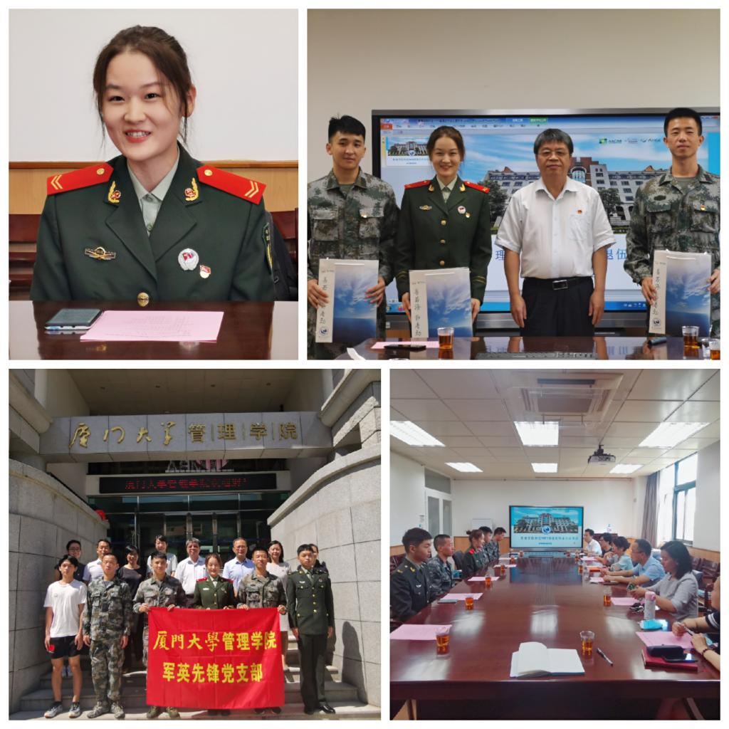 6月28日上午,管理学院“欢送军英先锋党支部2020届退伍毕业生座谈会”在嘉庚一302会议室举行。会上,退伍毕业生王莹、梁毅得、马龙昌分别汇报毕业去向,分享军旅生涯对自身求学、深造、就业的影响、感悟与收获。阳光洒在笔挺的戎装,3名军英先锋党支部2020届退伍毕业生声音硬朗而不失温情。