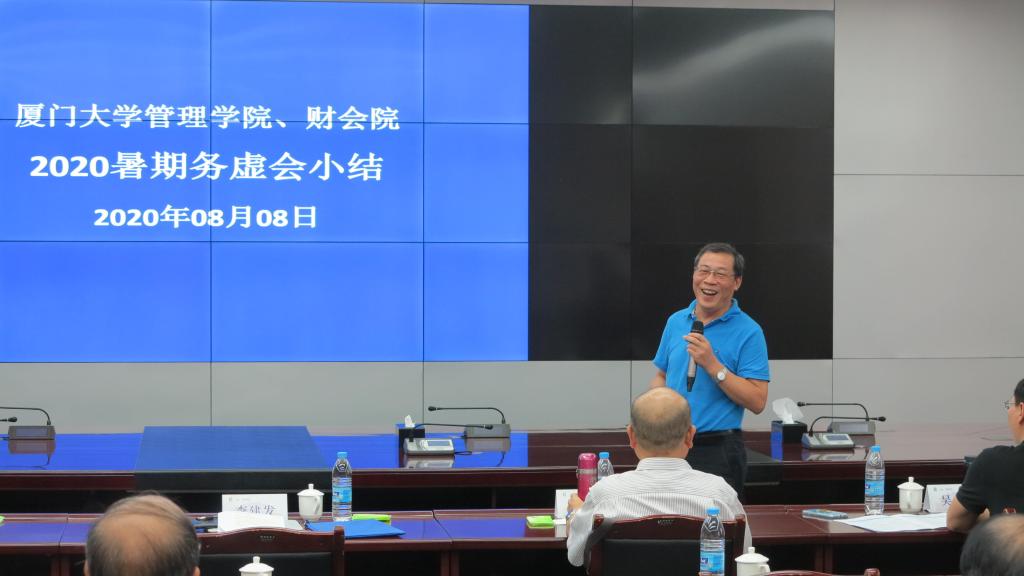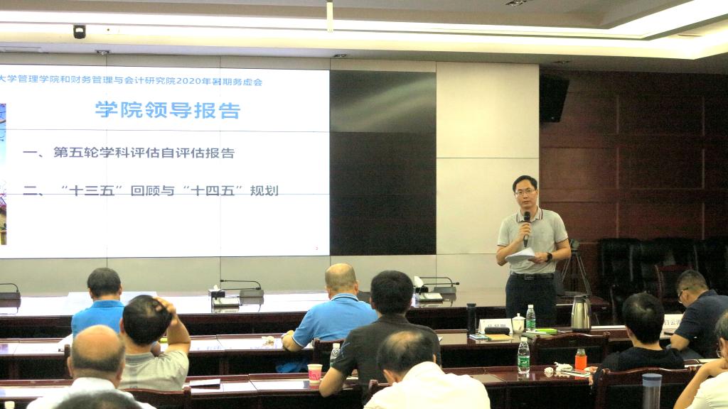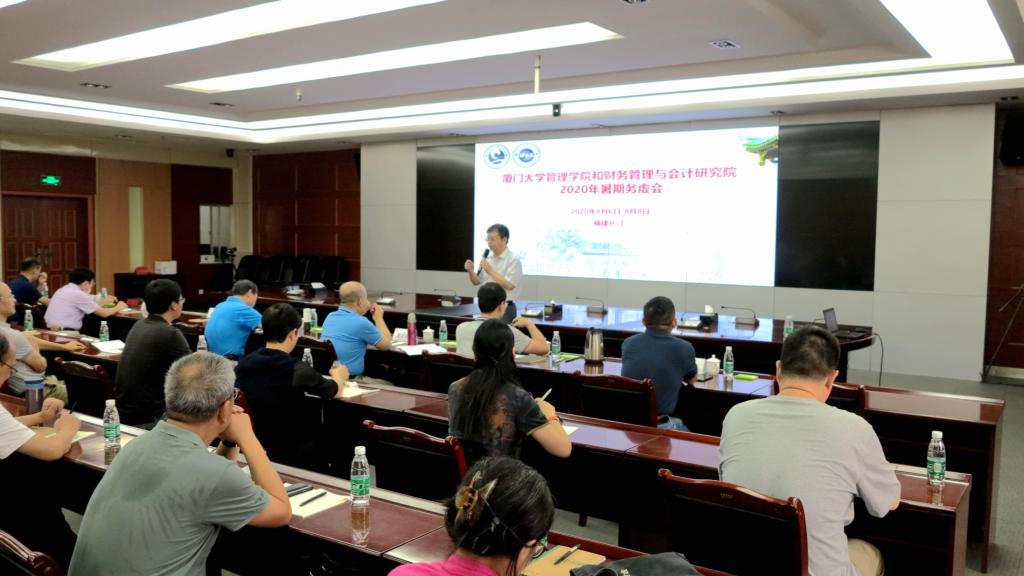 围绕学院第五轮学科评估和“十四五”发展规划主题,8月7日-8日,管理学院、财务管理与会计研究院在福建长汀召开暑期工作务虚会。学院、研究院领导班子,历届正职领导,系/中心主任、副主任,各科研机构负责人,正科级及其他(人事、科研)党政人员出席会议。校党委常务副书记、管理学院院长李建发出席会议并作报告。会议由管理学院党委书记邱七星主持。