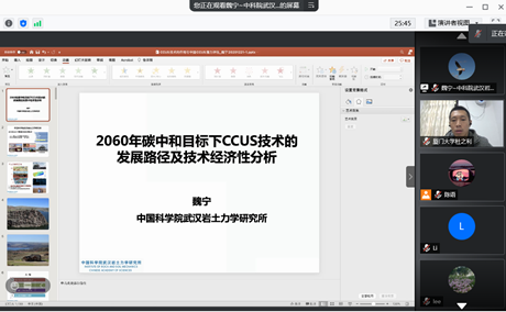2020年12月21日上午9:30,中国科学院武汉岩土力学研究所魏宁教授做客厦门大学管理学院中国能源政策研究院“能源环境经济与管理学术名家讲坛”,带来了题为“2060年碳中和目标下CCUS技术的发展路径及经济性分析”的线上报告。魏教授基于自主开发的技术经济评估模型及源汇匹配的系统评估模型,定量探讨碳捕捉、利用及封存(CCUS)技术在中国煤基能源产业的应用潜力及经济性,并分析CCUS技术商业化的主要挑战和对策,吸引了众多管理学院师生聆听报告。讲座由中国能源政策研究院助理教授杜之利主持。