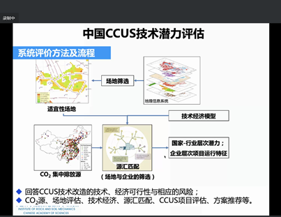 随后,魏宁教授深入浅出的介绍了团队使用的中国CCUS技术潜力评估模型,并展现了相关模拟结果。60美元/吨碳价条件下中国可以实现每年约34亿吨的封存容量。中国主要封存地的源汇匹配性较好,但是华南及东南沿海区域的部分排放源难以匹配适宜的陆上场地,需要考虑离岸或碳贸易等措施。