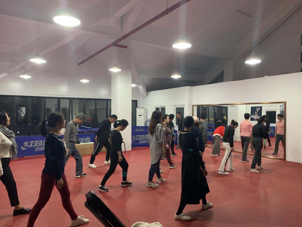 有氧舞蹈课程中,在老师的带领下,配合音乐有节奏地舞动的有氧运动,有氧舞蹈一方面能消耗较多热量,一方面能把许多舞蹈动作健美操化,通过有氧健美操的锻炼形式,反复或进行组合练习。有氧舞蹈有许多风格,音乐与舞蹈的结合紧密,教职工们锻炼时能达到愉悦身心的效果,同时创造、想象、表现和艺术修养等综合能力都达到提高。