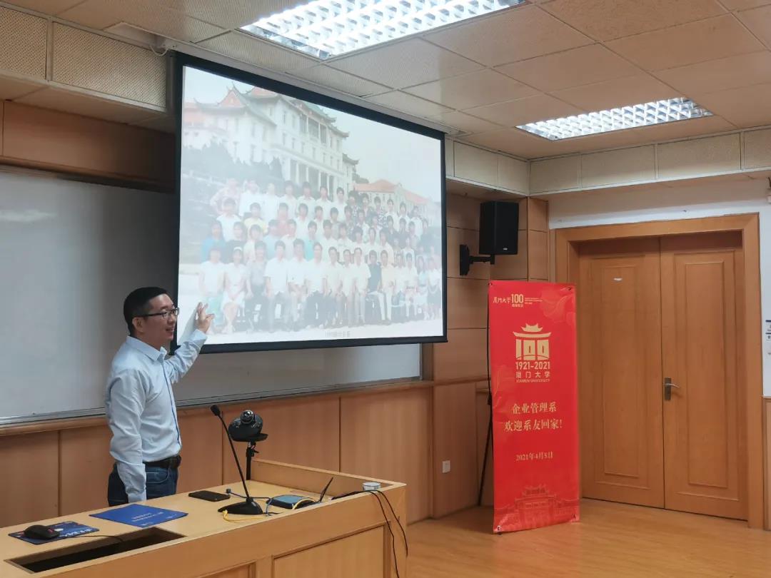 4月4日,市场学系校友会组织返校系友进行了市场学系系友座谈会,活动在嘉庚一号楼100教室举行。本次活动作为市场学系校友会为庆祝母校百年校庆举办的重要活动,吸引了老师、系友和在校同学们的广泛参与,不仅为返校系友提供了回校相聚的机会,在校的师弟师妹们也能通过座谈,了解本专业毕业校友们的职业生涯发展情况,提前为自己的就业和学业做好准备。座谈活动获得了广泛好评,也为厦门大学百年校庆献上了市场学系独有的祝福。