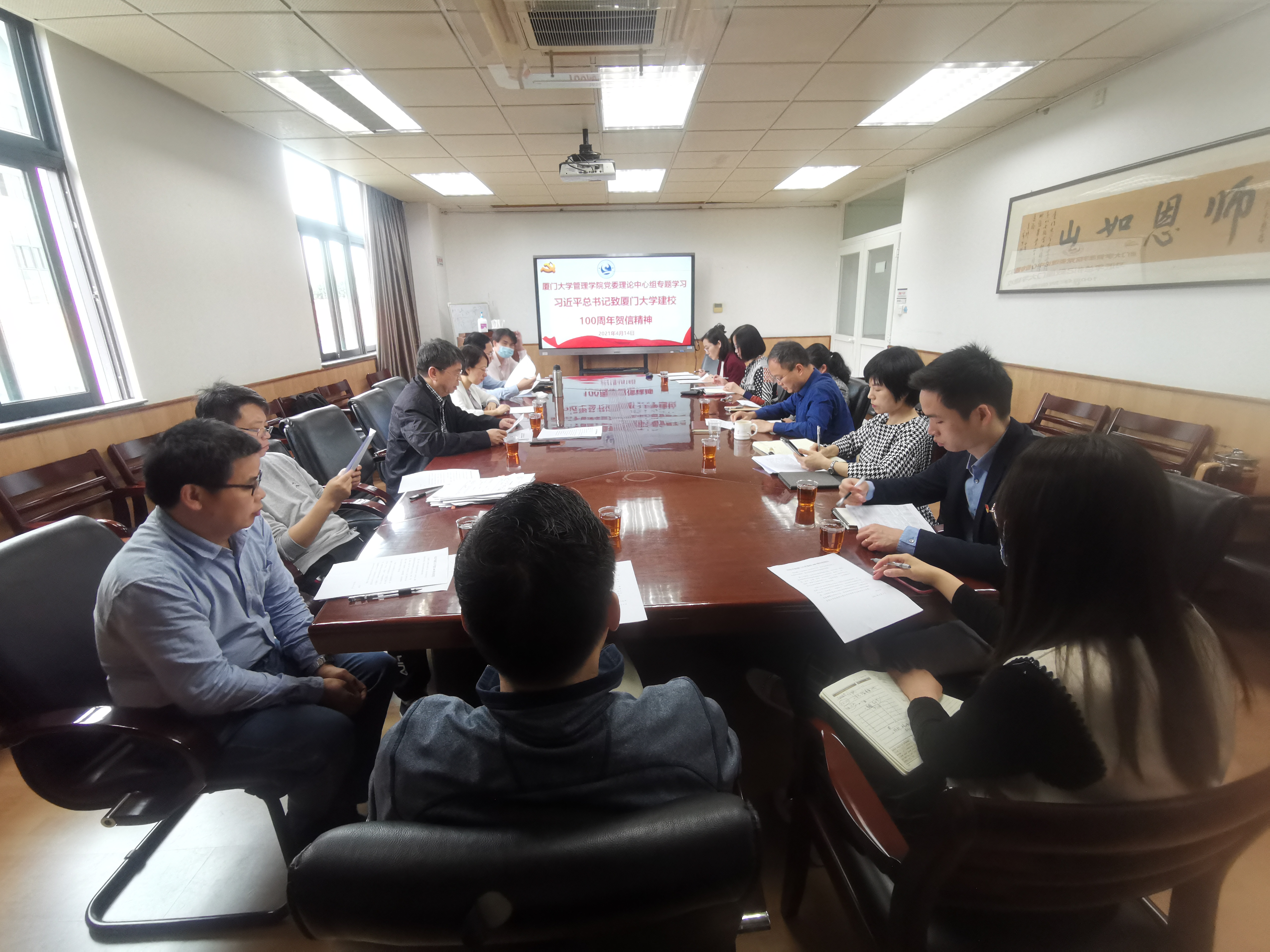 为深入学习贯彻落实习近平总书记致厦门大学建校100周年的贺信精神,4月14日上午,管理学院党委理论学习中心组召开学习(扩大)会,认真学习领会贺信精神,并研究部署学院学习宣传贯彻落实贺信精神具体方案。学院党委书记邱七星主持会议,学院党委理论学习中心组成员、教工党支部书记等参加学习会。