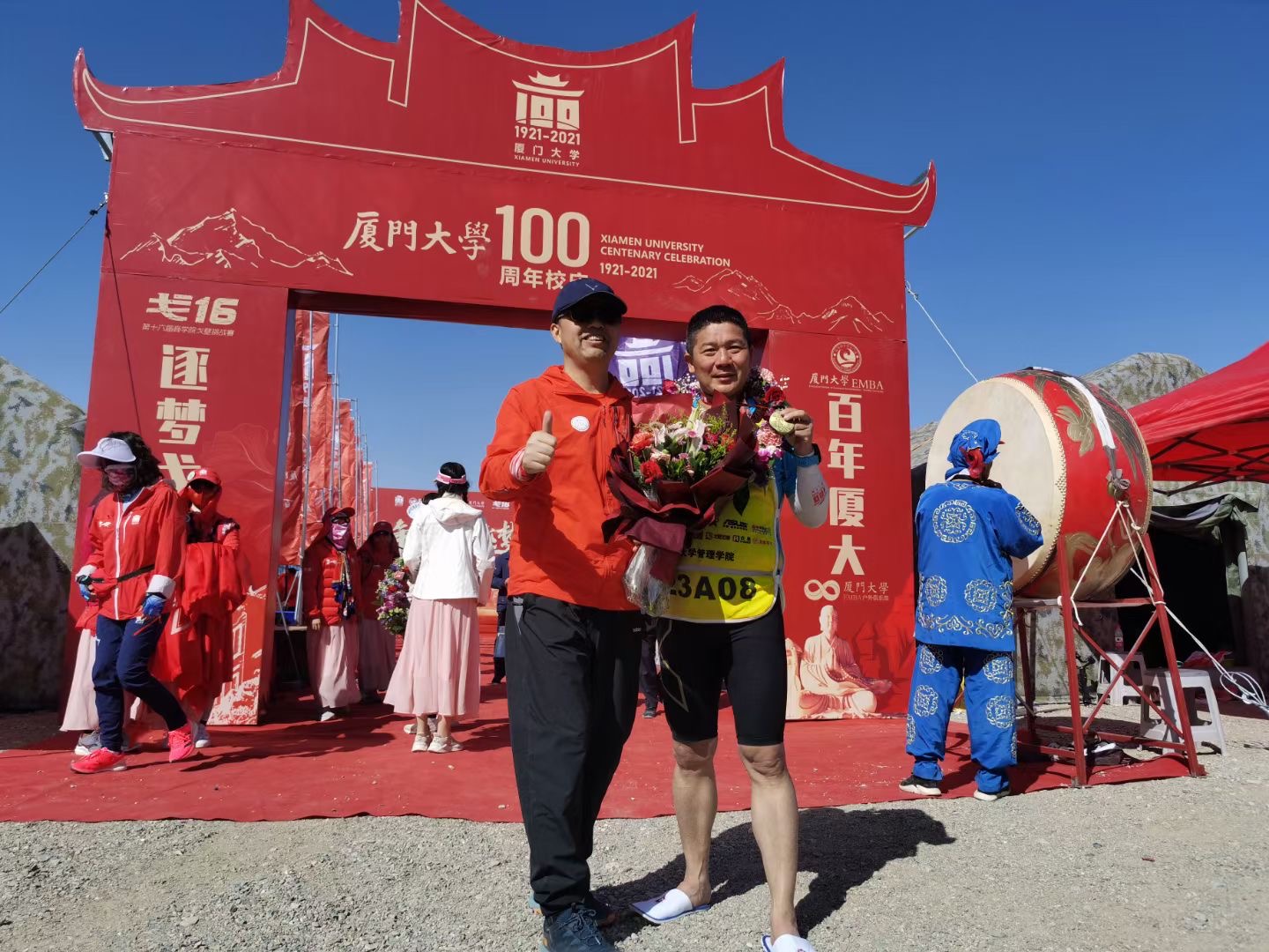 厦门大学EMBA中心主任李常青教授亲赴终点现场,迎接凯旋的勇士们。
