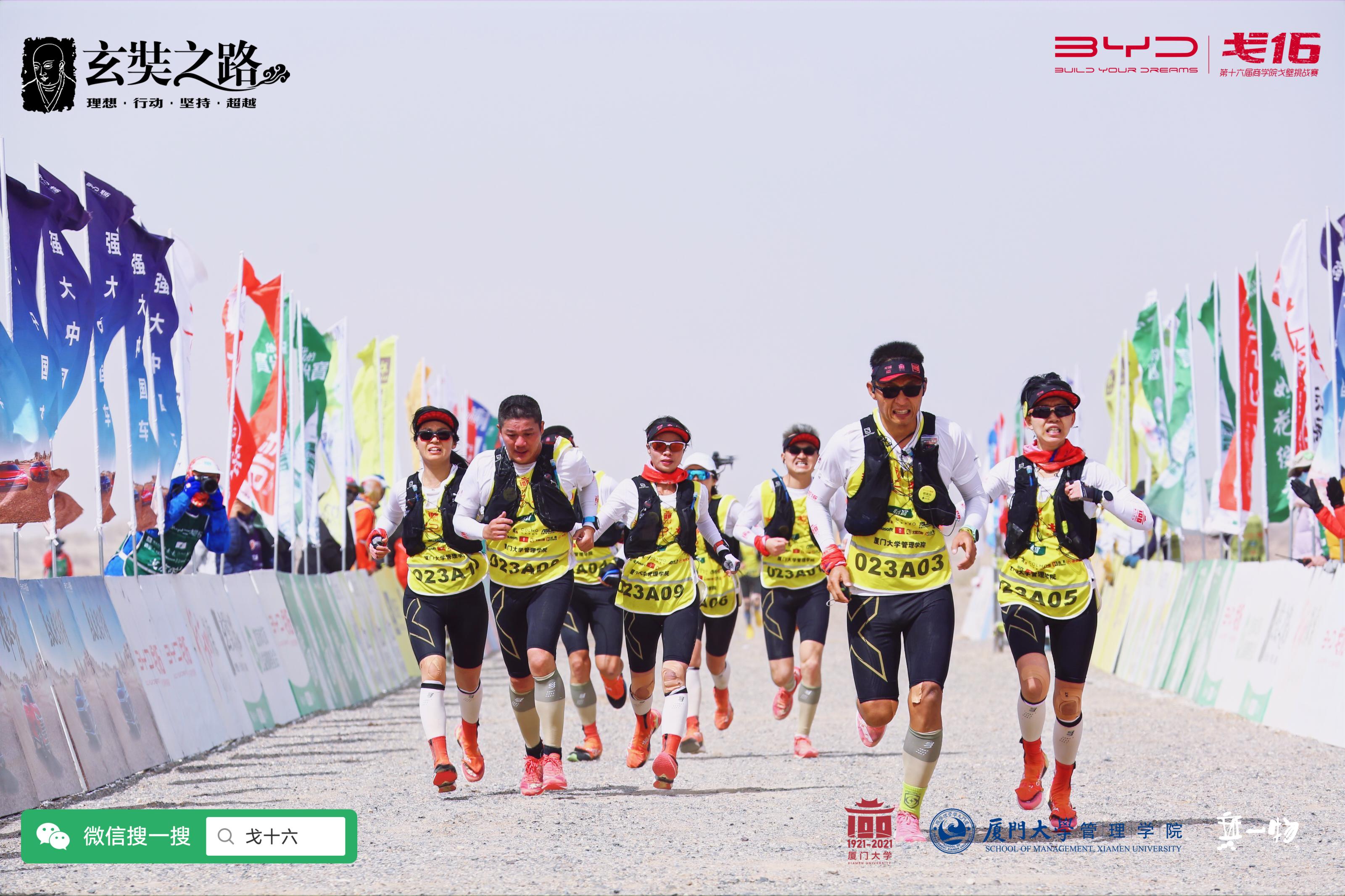 今年恰逢百年校庆,为参赛戈16赋予了更多的含义,厦大队的参赛人数是有史以来最多的一次。接近400名厦E学子奔赴戈壁,在一望无际的戈壁滩上,在沙尘暴、烈日、大雨等极端条件下挑战自我,翻山越岭去寻找真实的自己,经过四天三夜的自我拷问,背向繁华,用脚步丈量荒漠戈壁,敬畏自然、敬畏生命,用脚步丈量戈壁,用坚持献礼母校去感受每一颗砂砾中那厚重的历史与人类的伟大,去体会校主当年“宁可变卖大厦,也要支持厦大”、筚路蓝缕毁家兴学的壮志雄心与坚忍不拔。