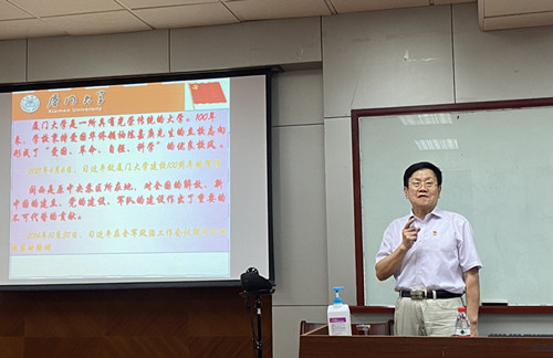 与党同龄的厦门大学,在党的旗帜引领下,与党同心,同向同行,为国育人,烙下浓墨重彩的红色印记。管理学院以校史中红色育人资源为载体,通过“陈嘉庚精神进课堂”的课程思政建设,组织瞻仰校史馆、厦大革命史馆等场馆,集中讲述身边的革命先辈故事等形式,引领广大师生传承厦门大学四种精神、继承革命传统。