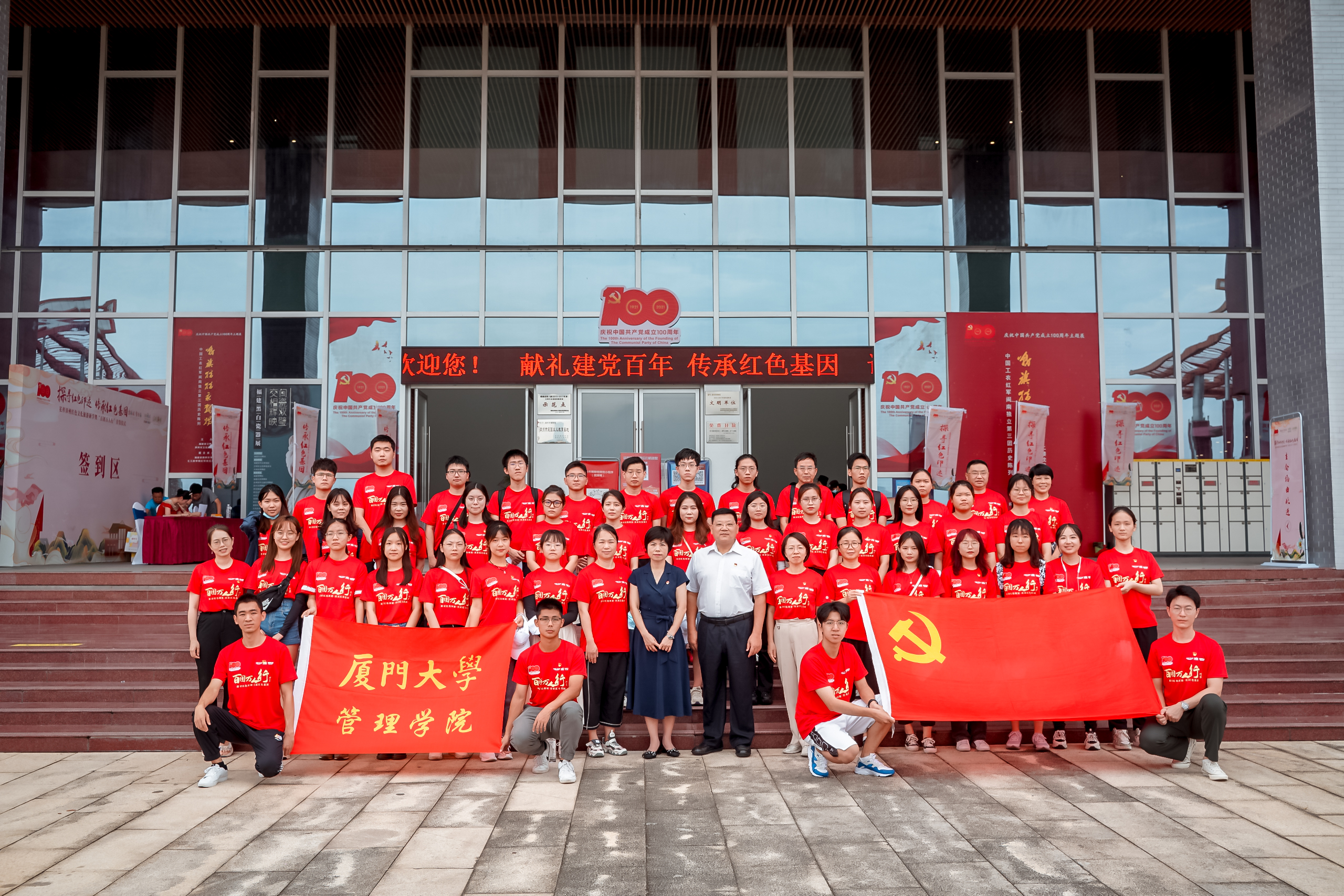 为深入学习贯彻习近平总书记在党史学习教育动员大会重要讲话精神以及致厦门大学建校100周年的贺信精神,6月29-30日,在建党百年来临之际,厦门大学管理学院45名学生骨干、新发展党员代表、教职工代表在管理学院党委副书记郑碧娇的带领下,前往漳州市开展为期两天的“重温红色历史·传承奋斗精神”主题红色学习体验活动,追忆峥嵘岁月,践行初心使命。引导青年学生学史明理、学史增信、学史崇德、学史力行,将红色基因植根于心,争做时代新人。
