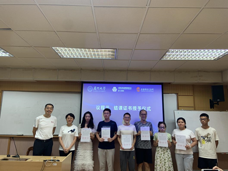 第三个环节是结课证书颁发仪式。管理学院教授、博士生导师刘峰和管理学院教授蔡宁一同为学生颁发了结课证书。