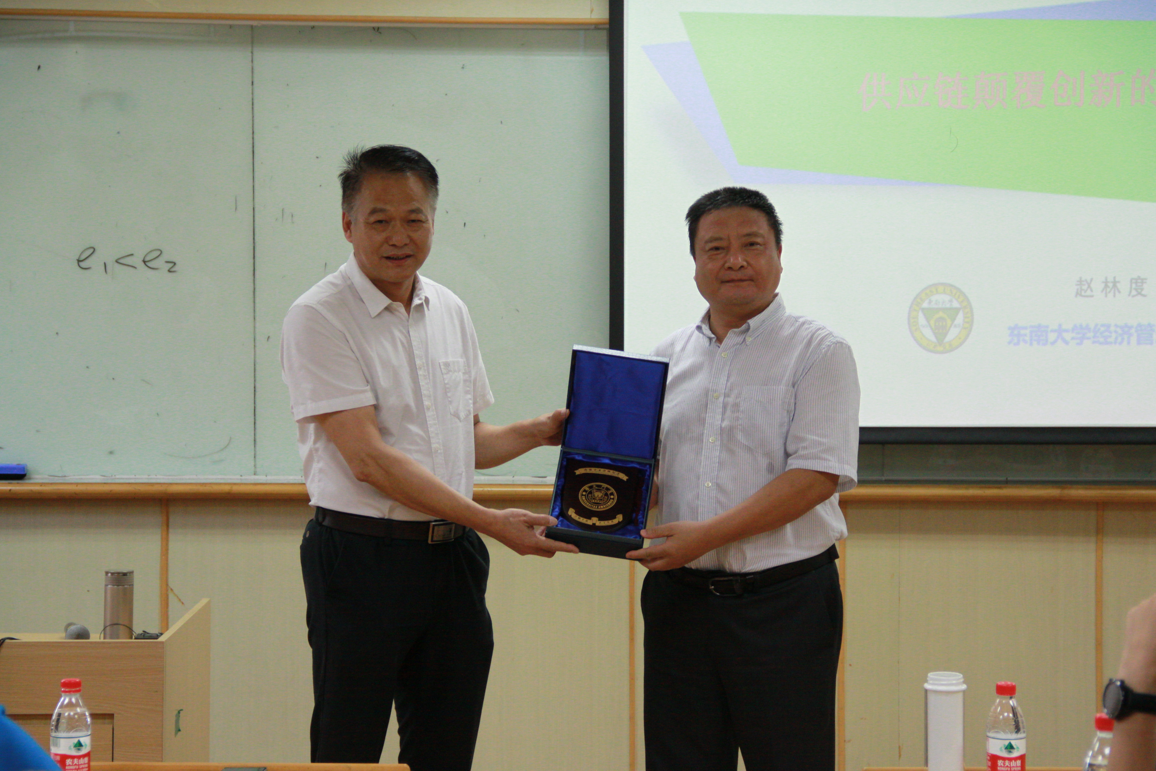 奋斗百年路 启航新征程。至此厦门大学百年华诞之年,2021年7月19日下午,东南大学原经济管理学院院长赵林度教授应邀做客厦门大学南强学术讲座(第1109讲),为师生报告了“供应链颠覆创新的认识”。讲座由厦门大学教务处处长、管理学院管理科学系计国君教授主持,并为赵林度颁发了厦门大学南强讲座纪念牌。