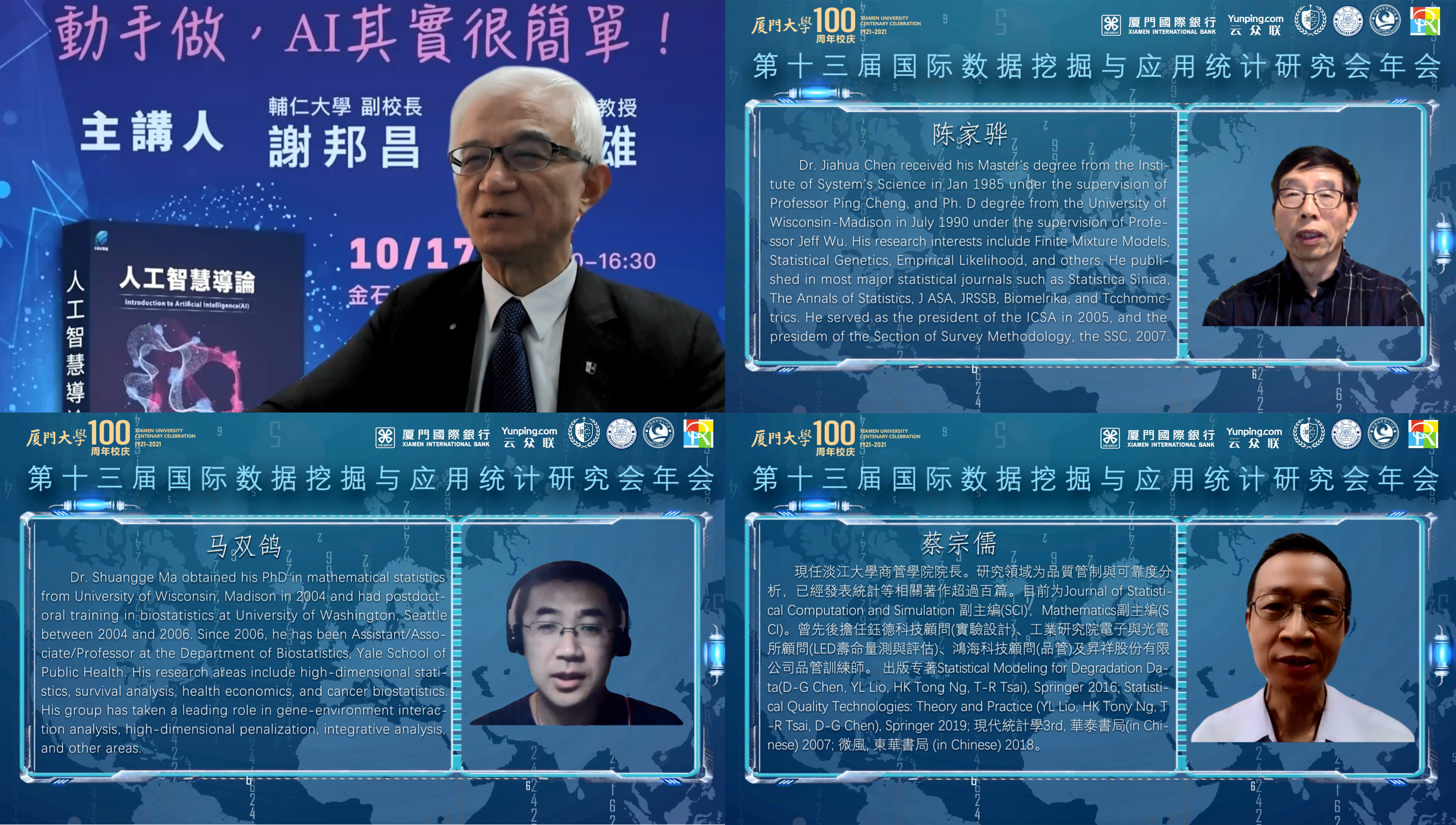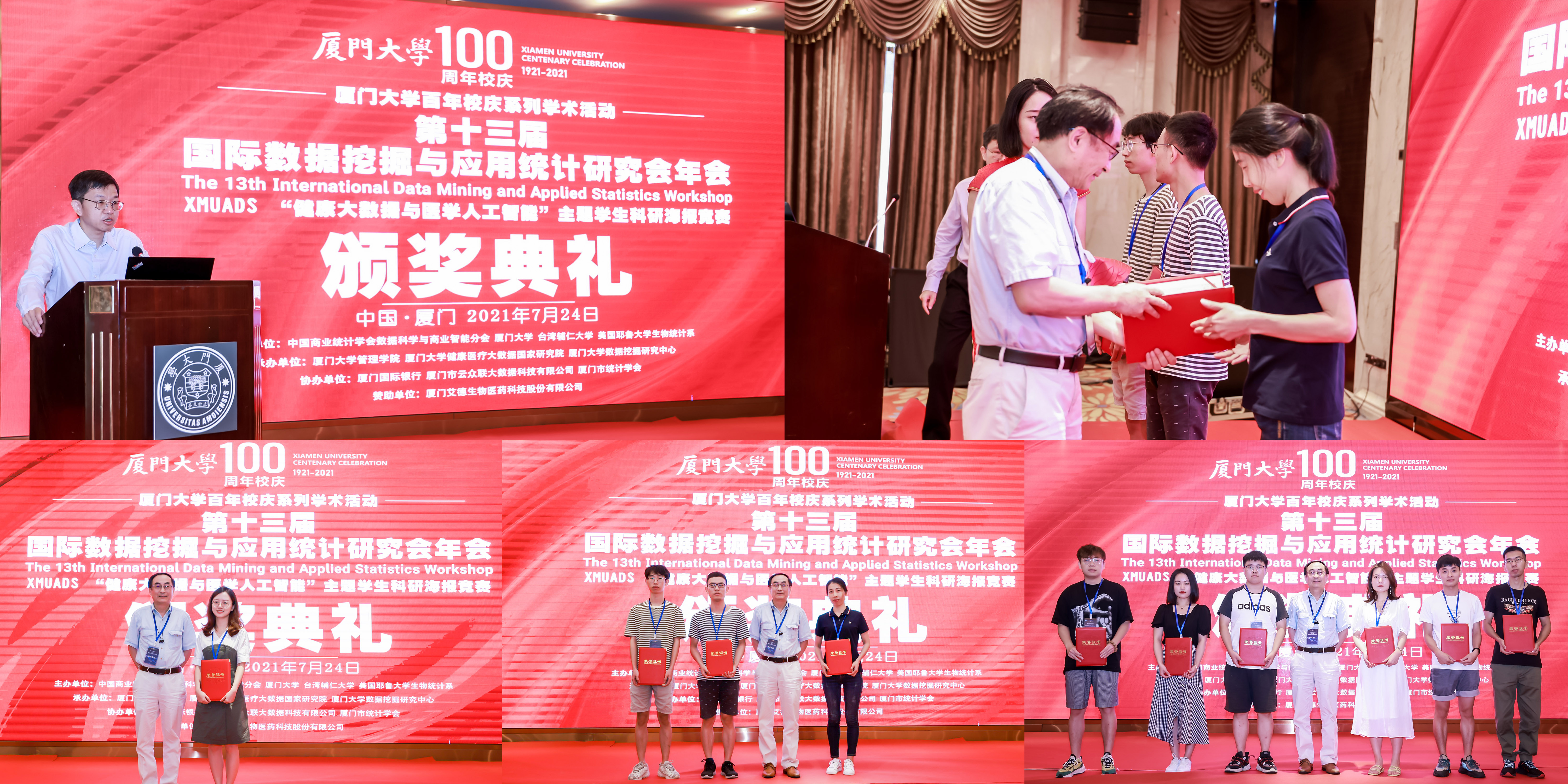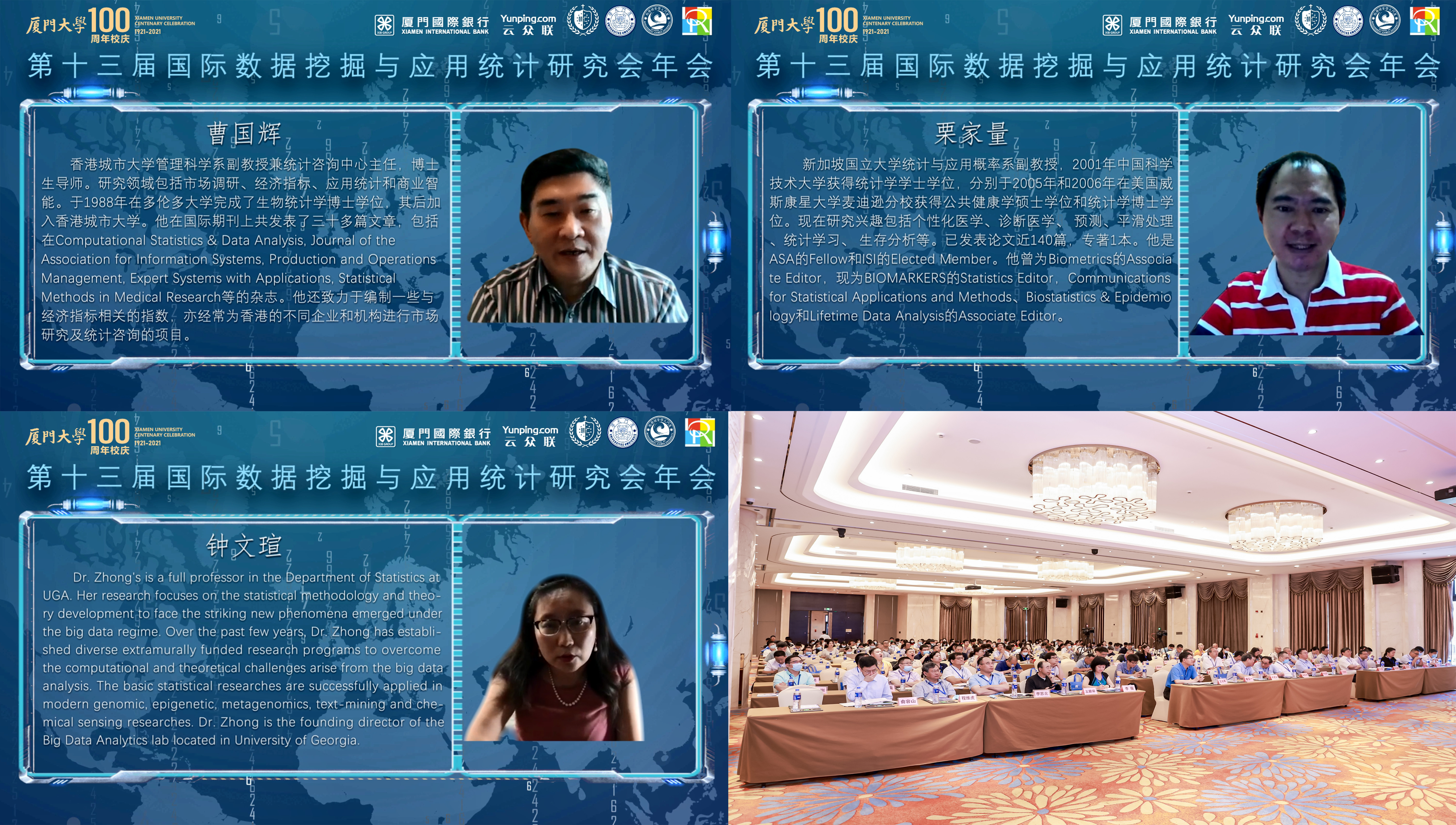 2021年7月23日至25日,第十三届“国际数据挖掘与应用统计研究会年会”在厦门圆满落幕。该年会由中国商业统计学会数据科学与商业智能分会、厦门大学、台湾辅仁大学、美国耶鲁大学生物统计系联合主办,厦门大学管理学院、厦门大学健康医疗大数据国家研究院、厦门大学数据挖掘研究中心联合承办,厦门国际银行、厦门市云众联大数据科技有限公司、厦门市统计学会联合协办。