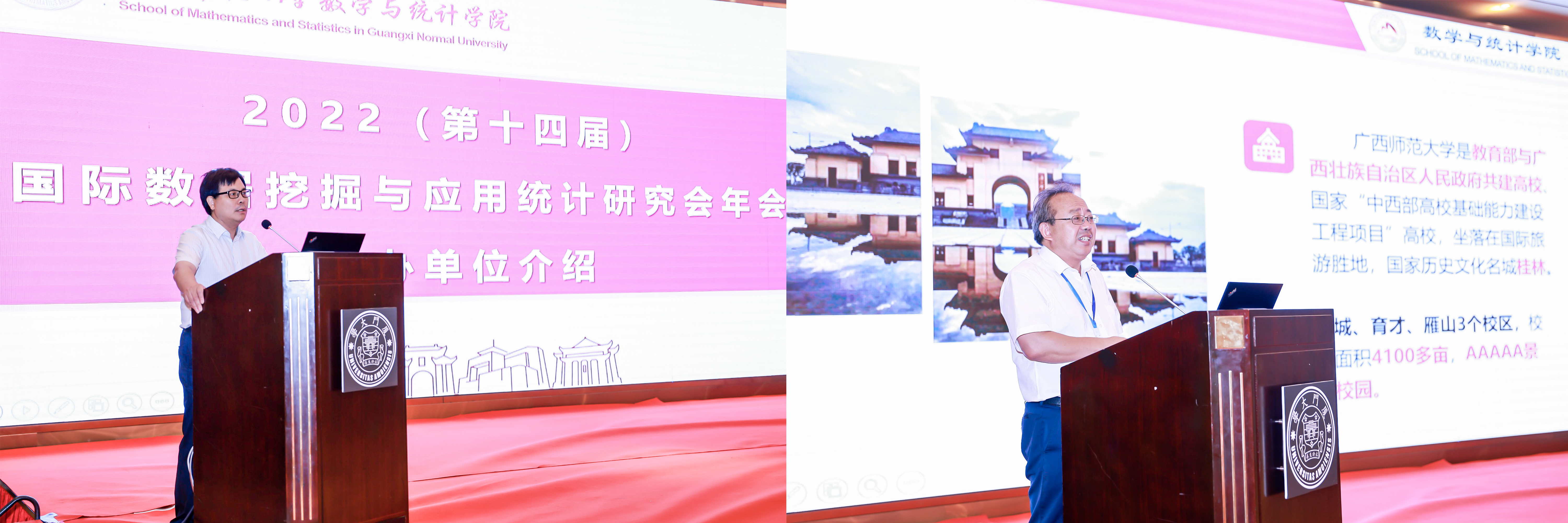 接下来,中国商业统计学会数据科学与商业智能分会秘书长李勇教授总结了大会报告,广西师范大学数学与统计学院院长张军舰教授承接了“第十四届国际数据挖掘与应用统计研究会年会”,并进行了致辞。