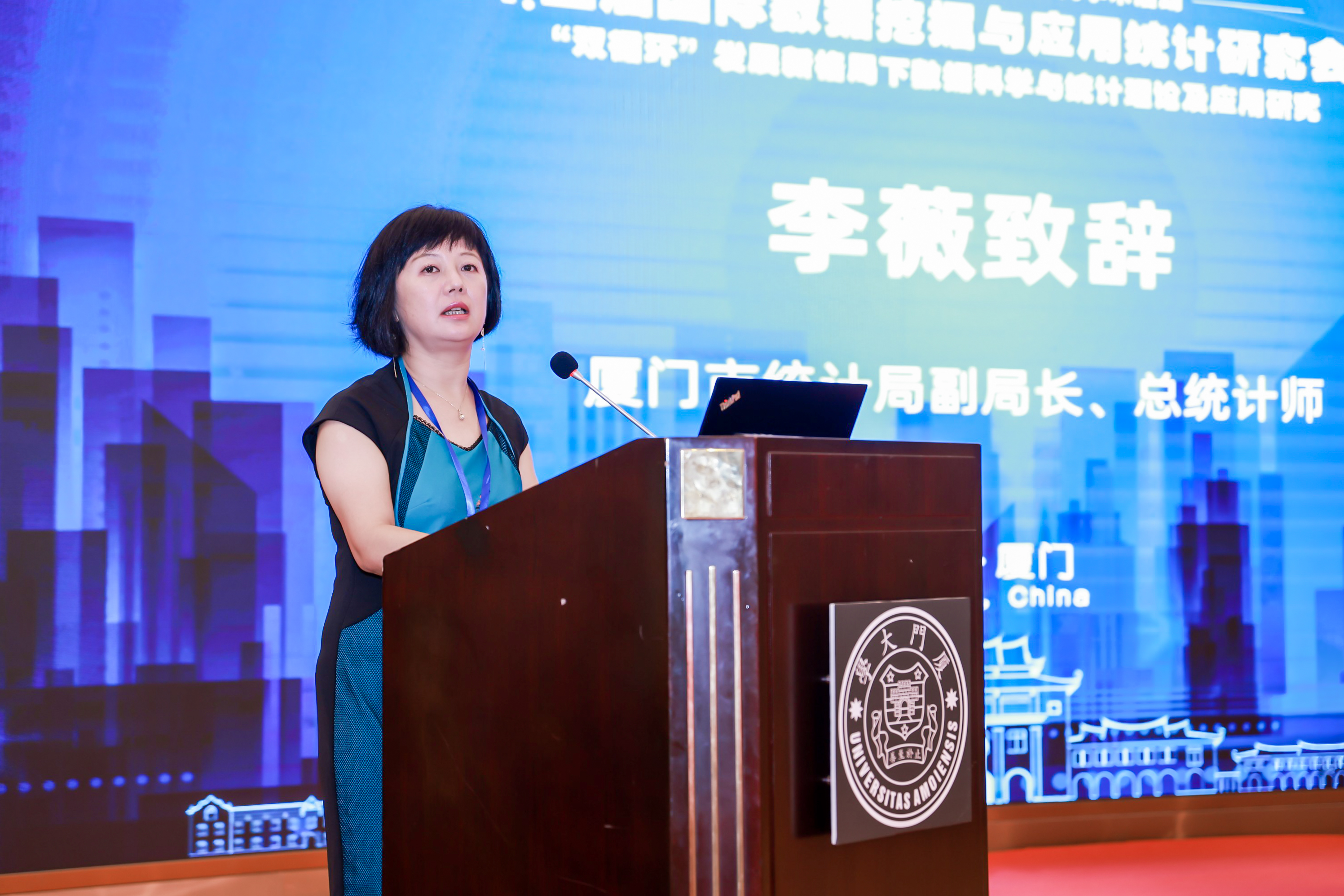厦门市统计局副局长、总统计师李薇女士代表厦门市统计局、厦门市统计学会致辞,对这次年会的召开表示热烈的祝贺。在开幕式上,李薇女士向参会代表介绍了厦门“高素质”、“高颜值”、“现代化”和“国际化”的发展现状,以及厦门市统计局面临复杂疫情影响和形势做出的努力。李薇女士表示厦门市正迎来新的发展机遇,欢迎参会嘉宾携手合作,共创未来。