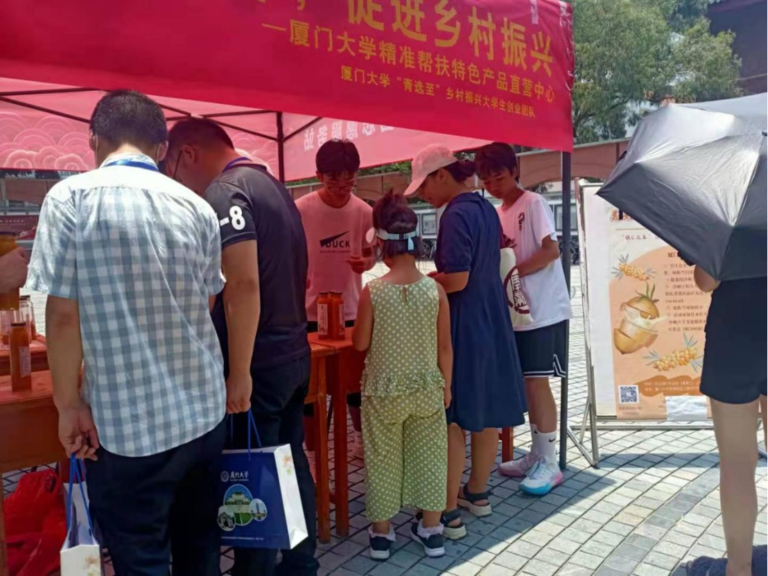 今年暑假,厦门大学管理学院青选至乡村振兴团队计划前往厦门大学重点帮扶对象——宁夏回族自治区隆德县进行实地调研,发挥专业知识为当地农产品销售出谋划策。虽然计划受疫情影响未能成行,但团队对宁夏隆德的帮扶热情丝毫不减。经了解,宁夏隆德残疾人群体创业项目“隆隆薯”生产的特色产品沙棘汁因疫情影响面临大量滞销、临期等问题。为尽可能降低损失,青选至团队迅速策划了沙棘汁畅饮活动。