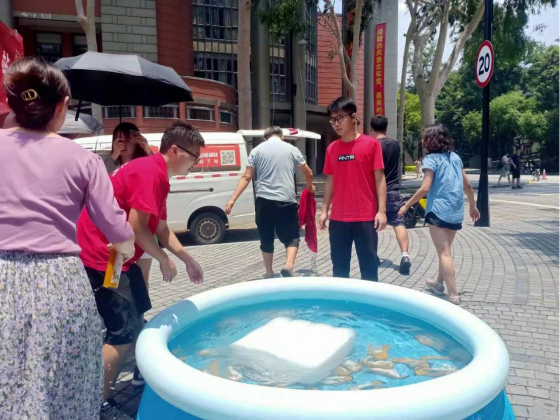 同时,此次沙棘汁活动也有幸得到了各方的倾力支持。活动开始后,管理学院的彭丽芳教授与袁喜娜教授等许多老师主动进行线上宣传带货,发动亲朋好友加入到爱心消费的行列中来。管理学院积极支持团队在嘉庚二号楼一楼增设取货点,为无法到场购买的老师提供预定服务等。厦大保卫处为团队提供了现场引导人员,为维护现场秩序与疫情防护发挥了重要作用。厦大后勤集团为活动提供了运输车辆与人员,使沙棘汁供货更加便捷快速。林梧桐楼为活动提供了大量冰块,使同学老师可以喝上冰镇沙棘汁。