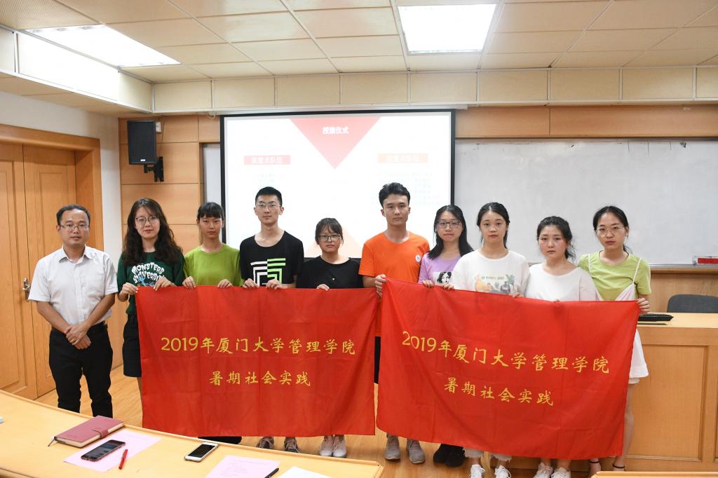 7月15日下午,管理学院2019年暑期社会实践出征仪式在嘉庚二203举行,出席仪式的领导老师有管理学院党委副书记戴蓥,团委书记江娇,学院团委副书记吴荣梅、周颖。