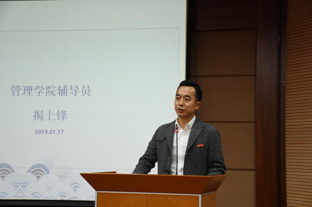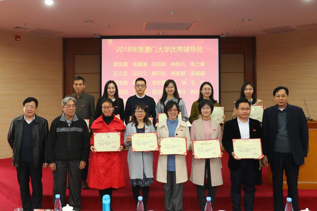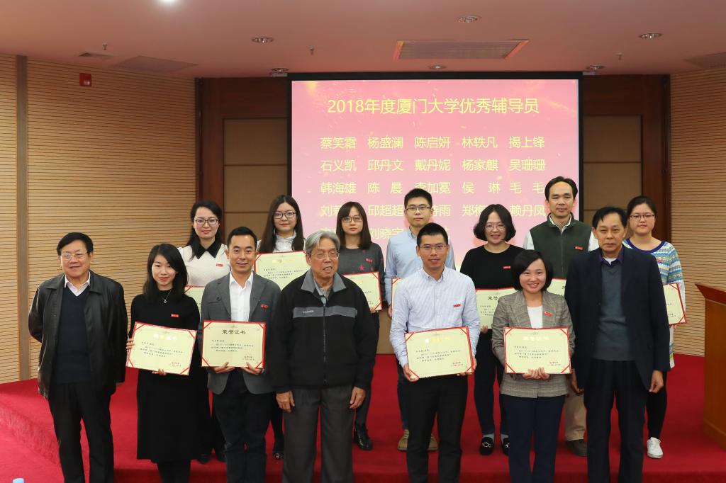 辅导员揭上锋获得2018年度厦门大学优秀辅导员称号,并作为优秀辅导员代表在大会上作经验分享。辅导员刘晓宇获得2018年度厦门大学优秀辅导员称号。