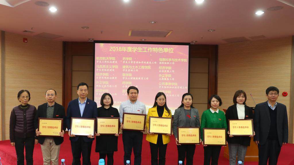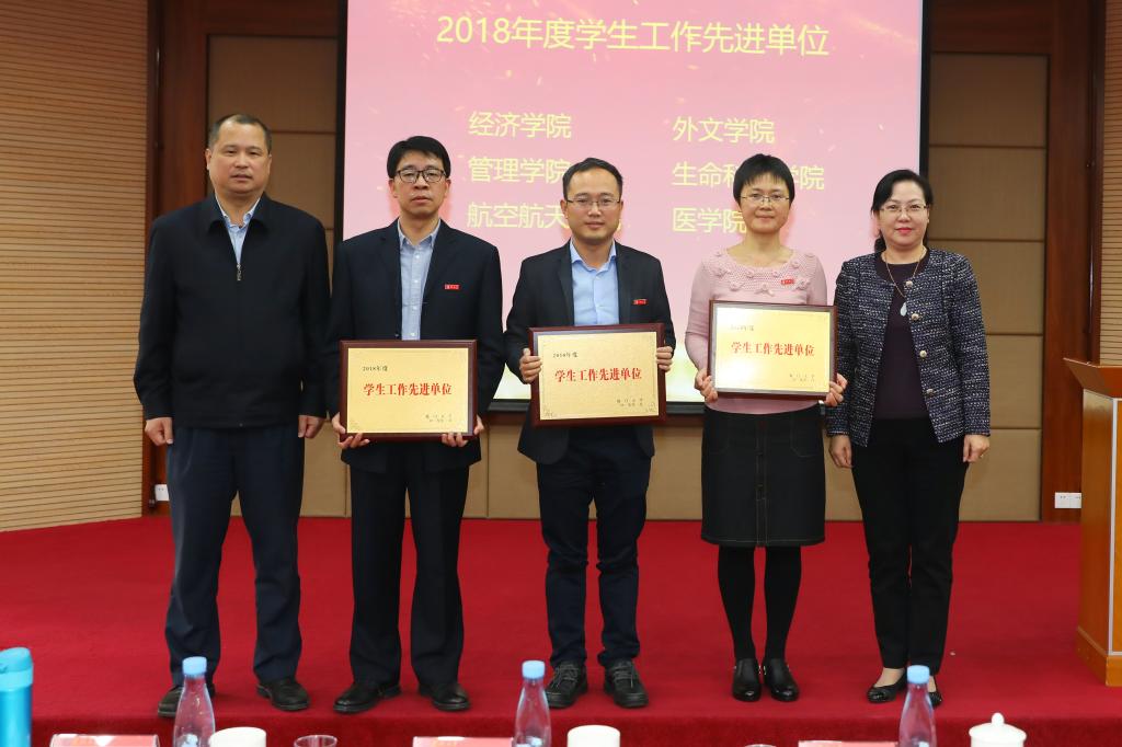 大会对2018年度学生工作进行了表彰。管理学院以优秀的考核指标得分获得了“学生工作先进单位”称号。
