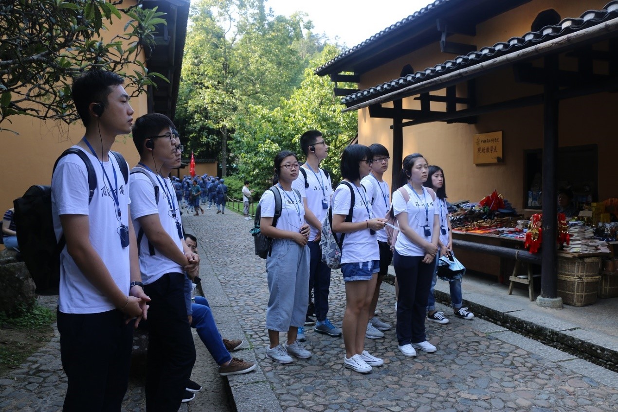在带班老师的带领下,实践队首先来到茨坪毛泽东旧居参观。刚进大门映入眼帘的便是毛泽东同志的高大的雕塑。走入室内,可以看到房内摆放着简陋的家具,一席草席整齐的铺在床上。在游览旧居的过程中,可以清晰的感受到当年生活环境的艰苦。而毛泽东同志正是在这困难的条件下,写就了《井冈山斗争》一文,也正是在这艰难的环境中,毛泽东领导中国共产党共同打下了新中国的江山。“红米饭,南瓜汤,秋茄子,味道香,餐餐吃得精打光”,随着带班老师为我们唱起这首歌谣,我们不禁为当时在艰苦环境中仍能抱有乐观态度、不畏吃苦的红军战士产生了崇高的敬意。