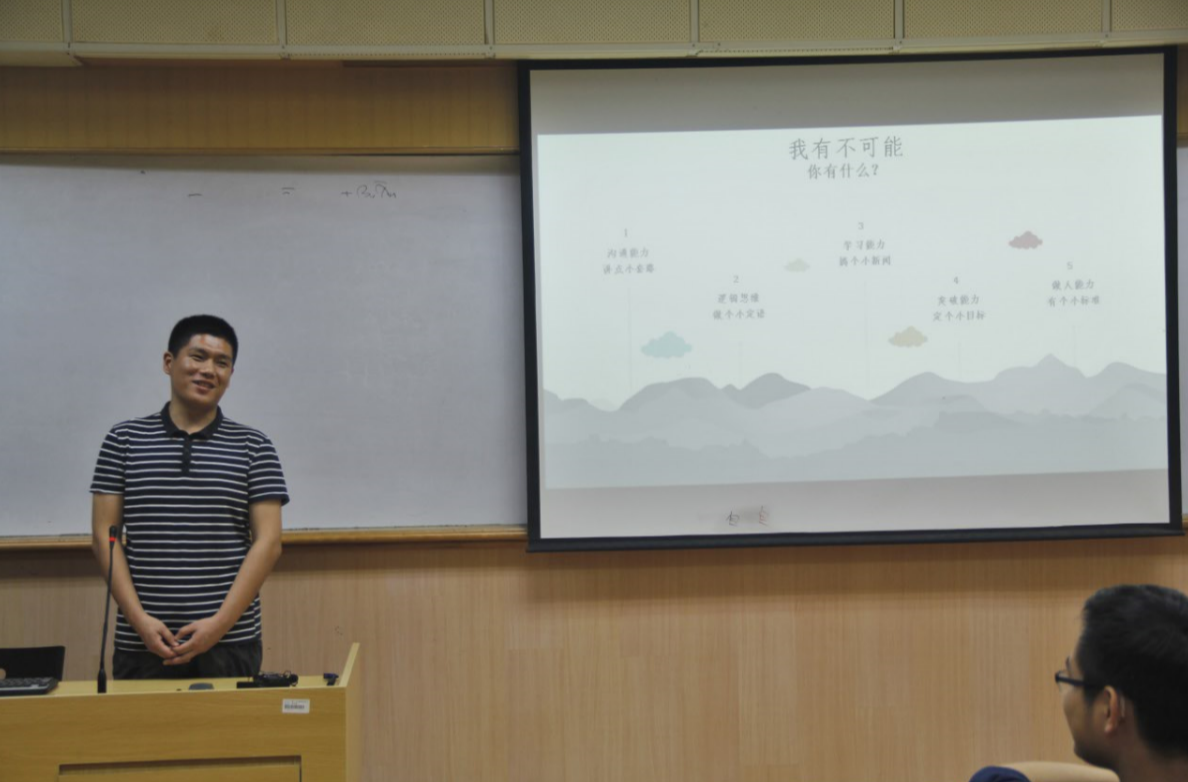 “走过,回头,撒下”是萧原前辈今天的课题,从一开口他就以深深的幽默感征服了观众,在台上散发着魅力。望着观众席,他突然谈起一段演讲经历,说当时只有一位观众,那语气似调侃却又闻出心酸失落的味道,而现在他通过不断努力拼搏,平均每次演讲都有100多位观众,短短数句确是很长的一段成长历程。