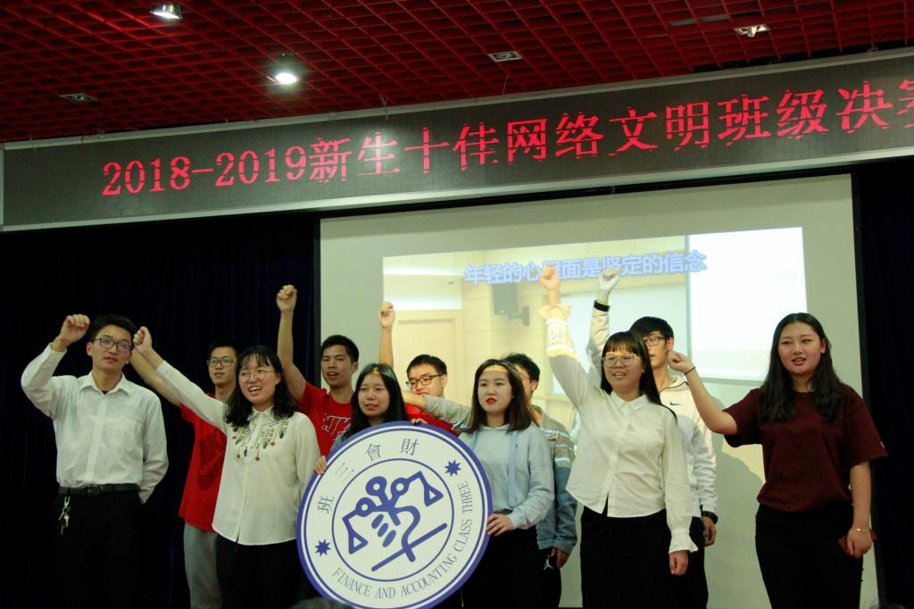 3月31日下午,校“2018-2019学年新生十佳网络班级”决赛在自钦楼多功能报告厅如期举行,战况激烈,精彩纷呈。最终,我院2018级本科财会二班、财会三班、财会五班、财会六班都以优秀的表现获校“十佳网络文明班级”荣誉称号,我院团委副书记吴荣梅、辅导员刘晓宇获得“优秀指导教师”荣誉称号。