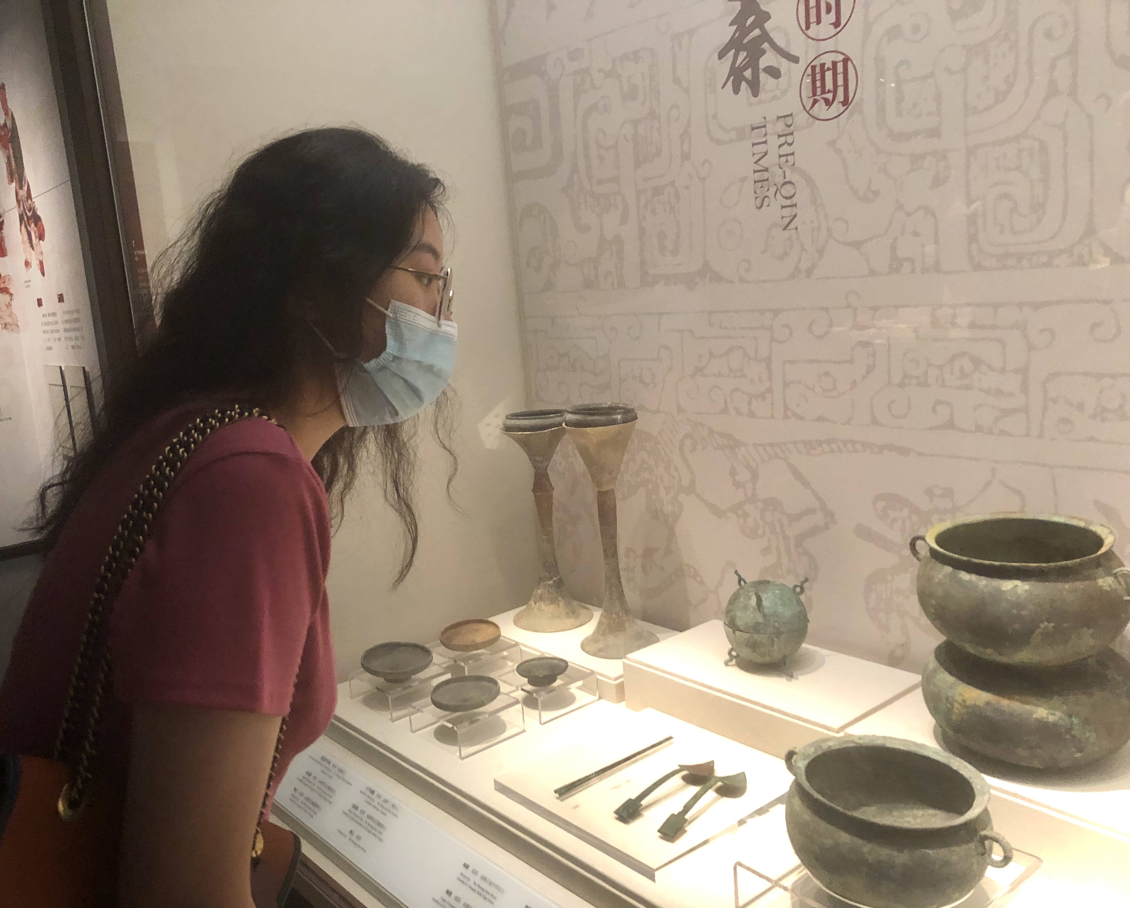 实践队临时党支部的党员同志们通过参观,深入解了天府之国历史文化底蕴,感受中国历史的源远流长与中华文化的博大精深。新闻传播学院2020级研究生何欣璐表示:“成都博物馆让我对成都这座古都有了不同层次的认识。亲眼见到了铜人头像等教科书上的“网红”文物,被精巧的工艺深深震撼,还通过精美的陶俑、漆具、铜器、织品等,感受到古代劳动人民的智慧和他们对生活的热爱。优秀的中华文化遗产让我更加坚定地燃起了文化自信,也联想起《国家宝藏》等节目,让我看到了文物在当下所焕发出的新兴生命力。希望自己也能够运用专业知识为中华文化的传播贡献力量。”