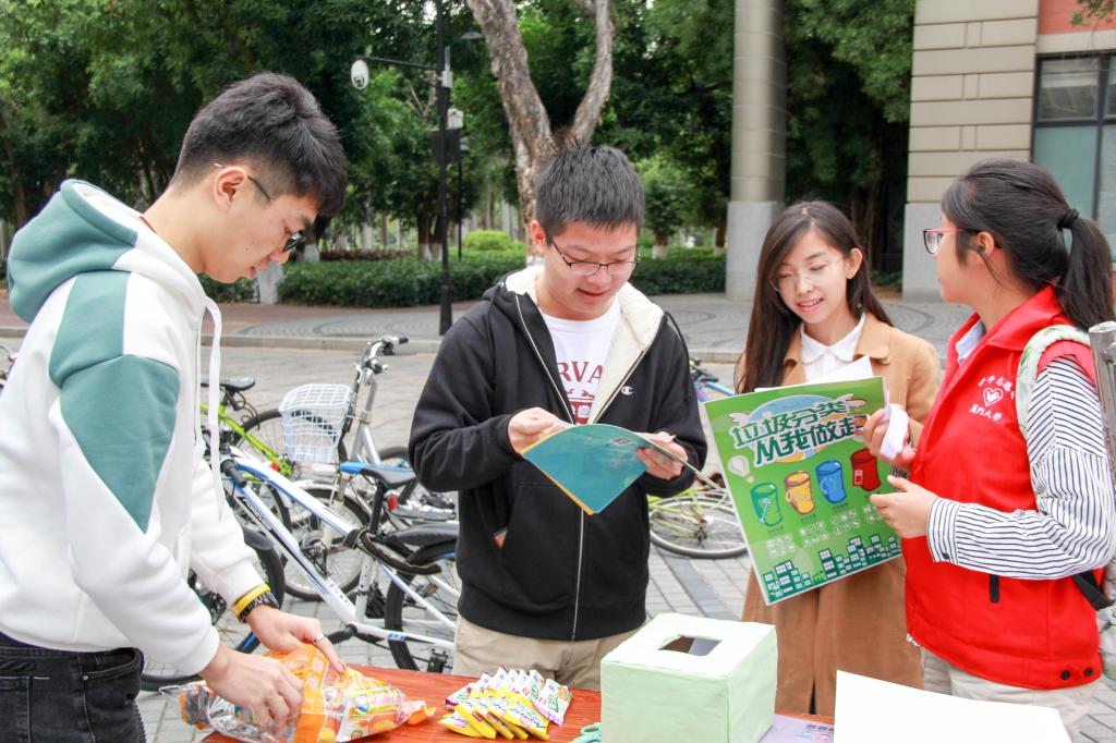 其中,管理学院的项目展示表现尤为亮眼。管理学院此次的志愿服务项目展示主要有“爱心拾翼”、“美涂一厦”、“垃圾分类”。“爱心拾翼”活动旨在关爱自闭症儿童,主要内容是陪伴自闭症儿童,关注他们的成长并辅助他们治疗;“美涂一厦”活动则是修复因游客不文明参观而损坏的涂鸦,引导同学们保护校园文化,引导游客文明参观;而“垃圾分类”是在校园实施垃圾分类,此次活动也是为了提高同学们垃圾分类意识,助力推广垃圾分类,共建生态文明。在今天的活动中,管院也精心准备了答题小游戏,题目围绕“垃圾分类”的相关知识展开,凡是答对题目数量达到要求的同学都可以获得小礼品小零食。