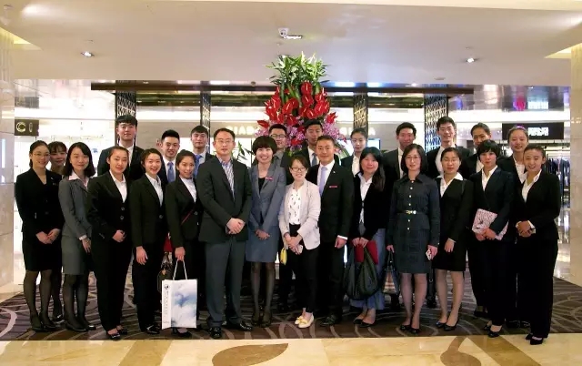 在乐怡吧,皇冠假日酒店的苏总经理——厦大校友、学长,跟同学们分享了关于未来的就业前景和关于酒店的职业规划,并且亲切的说“磐基假日酒店的大门永远向厦大学子敞开着”。参观的脚步来到了酒店四层餐厅,首先来到中餐厅,中餐厅大堂的中式风格设计非常具有视觉冲击力,在包间里,服务主管给同学们详细讲解了有关包间设计、装修风格,以及服务事项等工作内容和流程,同学们结合课程所学知识向主管请教了“怎样提高顾客的满意度?”“一个服务员摆台需要多长时间?”“口布折花有哪几种方式?”等感兴趣的问题。从中餐厅出来,我们走进了酒店的西餐/自助餐厅,在这里大家看到了来自各个国家的各种点心和食物。紧接着,大家的脚步迈入了皇冠假日酒店在业内最具竞争力的会议区,参观了各式规格的宴会厅和会议厅。等大家再次来到酒店的大堂,2个小时的参观行程在不知不觉中完成了,同学们热情地邀请酒店接待人员一起合影留念。酒店人资部经理Jane小姐真诚地欢迎大家多来交流,她说:“酒店再给你们提供机会的同时,你们也会给酒店提出新的想法、注入新的能量。”