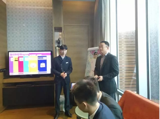 首先,队伍走进了厦门英迪格酒店,在这个时尚精致的酒店里,酒店的总经理、人力资源部经理以及培训部经理热情地接待了来自厦大的队伍。大家有幸站在豪华观景房的阳台上看鼓浪屿的全景、在卧室里体验一边可以当蹦床另一边却没有影响的高档睡床、在洗手间看到了全智能带按摩的马桶。在充满闽南文化特色的客房里,闵总经理为同学们介绍了英迪格的整体结构和内部信息。随后,人资部袁经理用精美的幻灯片让同学们又一次深刻地了解了洲际集团,特别是英迪格酒店令人耳目一新的“邻里文化”。厦大的同学也被邻里文化的主题所吸引,积极地提出问题以便更深入了解、随时记录以便在参观过程中有更高效的收获。在同学们不断地提问中,大家更加清晰地认识和了解目前酒店行业的最新动态和包括洲际集团在内的酒店集团的发展前景和未来的发展规划,大家充分交流,场面十分热烈。