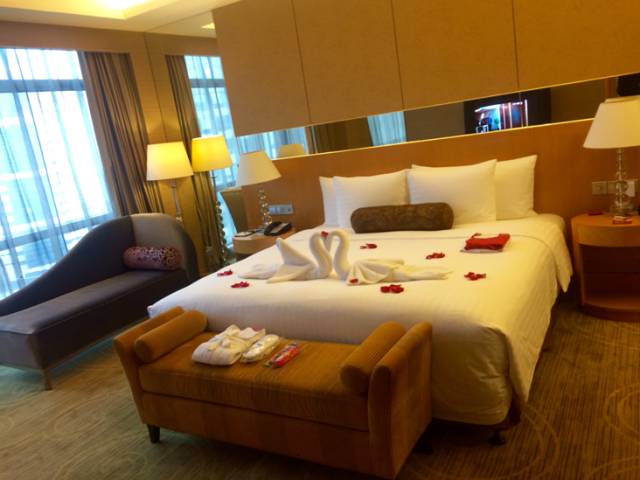 在磐基皇冠假日酒店, 两组同学在礼宾部经理和前厅大使的带领下走进了16层的行政层,行政层的负责人详细地介绍了行政层的组成部分、用途和包括VIP服务的酒店环境。随后在小型的会议厅里面,同学们跟酒店管理层进行了互动交流,问题开始于林建衡同学提出的“在公款消费受到很大打击的现在,酒店会不会受到影响,磐基是如何解决的呢?”,紧接着“酒店房间在网络上需要提前七天甚至更久预定会不会影响酒店的入住率?”“、“酒店成立至今最大的问题是什么?”、“房间宽带需要收费会不会影响客源入住?”小小的会议室里面气氛分外热烈,前厅部经理耐心的解答了各种问题。