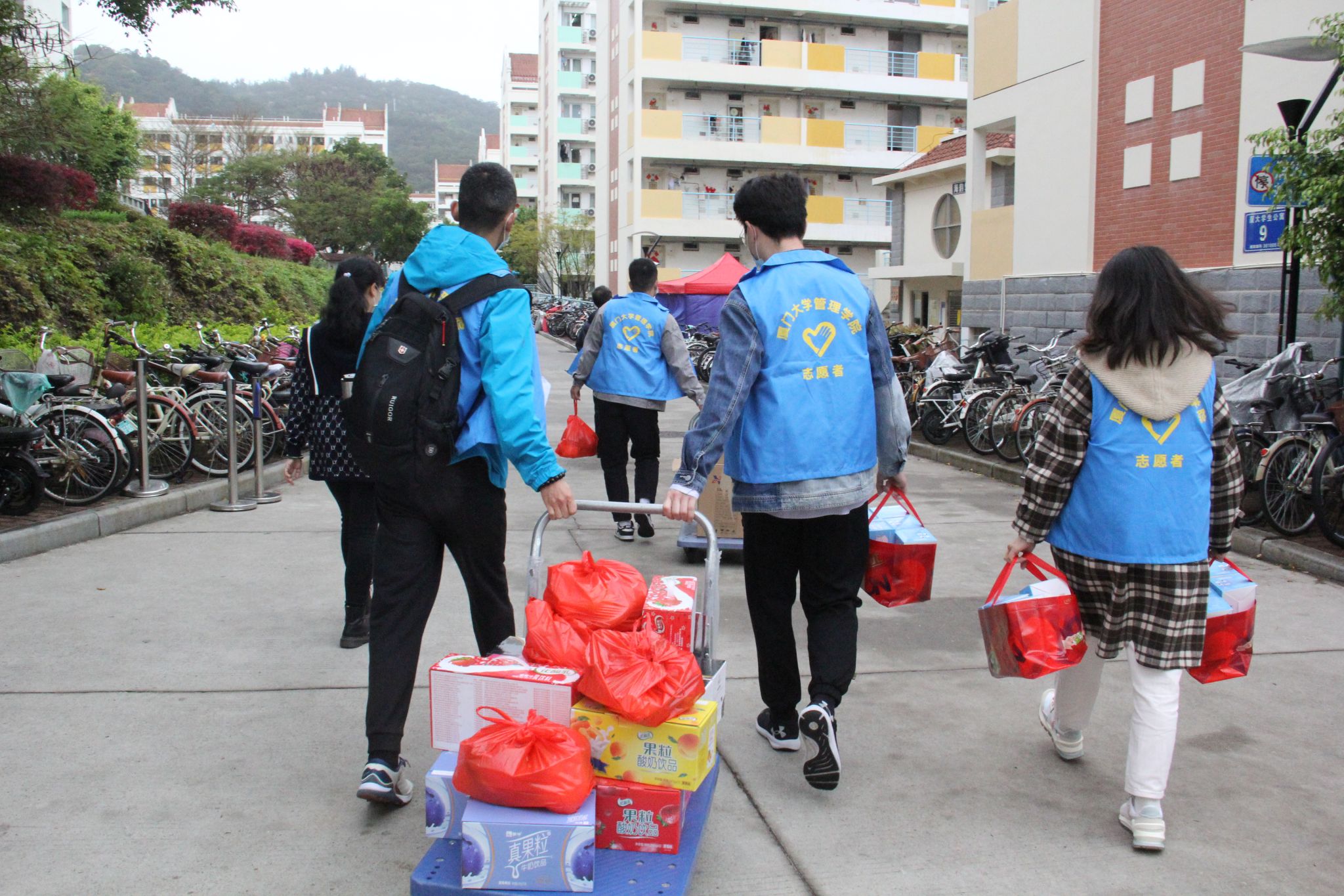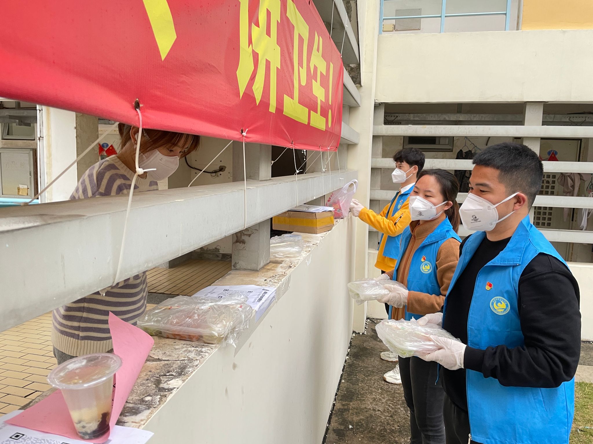 “我们都是退伍生,有需要我们随时顶得上”,杨公云表示,非常时期,支部一定可以做好非常使命担当。3月22日上午,军英先锋党支部支部彭雨丽、陈家辉等6名党员,给管理学院学生送去口罩、免洗洗手液、生活必需品等若干慰问物资,确保同学住的安心、吃的放心、用的省心。3月23日晚上,没有课程的支部成员全体报名志愿者,给海韵园区的数百余名学生送去晚餐。戴好防护口罩、手部消毒、核对截图、打包送餐,大家相互配合,分工协作,有条不紊地开展,受到师生的好评。“同学们太给力了”来自台湾的朱虹如博士给支部同学们点赞。