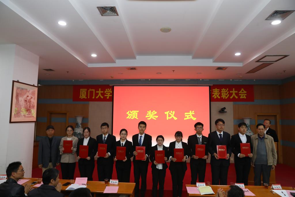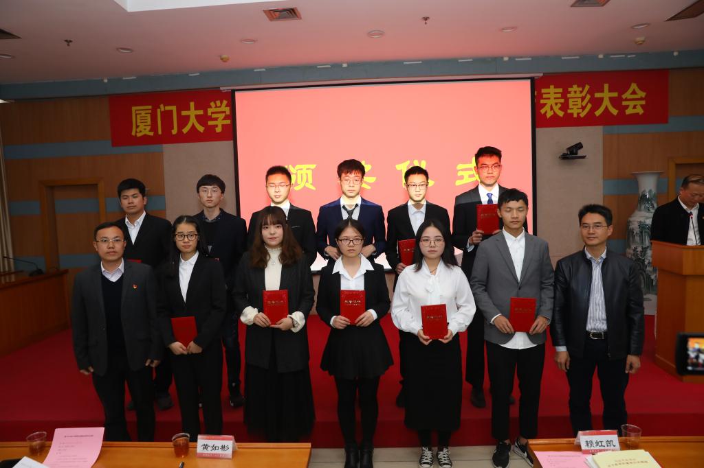 12月6日下午,2019年厦门大学学生“青春心向党,建功新时代”暑期社会实践活动表彰大会在学校颂恩楼220报告厅举行。出席表彰大会的嘉宾有:校党委副书记赖虹凯,校关工委常务副主任黄如彬,校关工委副主任杨敬达,校研究生副院长兼培养与管理办公室主任余自中,校党委宣传部副部长洪春生,校党委学生工作部副部长袁国柱,校党委教师工作部副部长伍伟平,现代教育技术与实践训练中心副主任刘传尧,校团委书记曾铮。参加大会的还有各院党委副书记、全体团干部、师生代表。我院在2019年暑期社会实践活动中涌现一批团队及个人斩获国家、校级多项荣誉。
