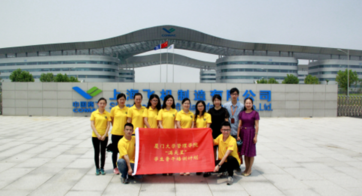 7月28日上午,管理学院“满天星”学生骨干培养计划之星越江海实践队的10名学生骨干在管理学院党委副书记洪秋霞、管理学院职业发展中心主任王燊、管理学院团委副书记吴荣梅的带领下走进了上海飞机制造有限公司,进行为期半日的参访学习。上海飞机制造有限公司的人力咨询师许婷婷等接待了实践队一行。