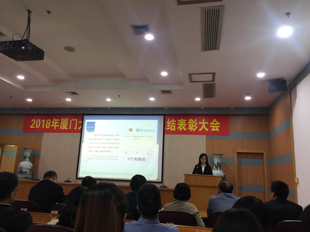 在此次总结表彰中,管理学院获得2018年厦门大学暑期社会实践活动优秀组织奖,企业管理系2017级硕士生吴欣睿代表我院“学习之路”实践团作主题经验分享。与此同时,学院涌现一批团队及个人获得国家、省级、校级多项荣誉。