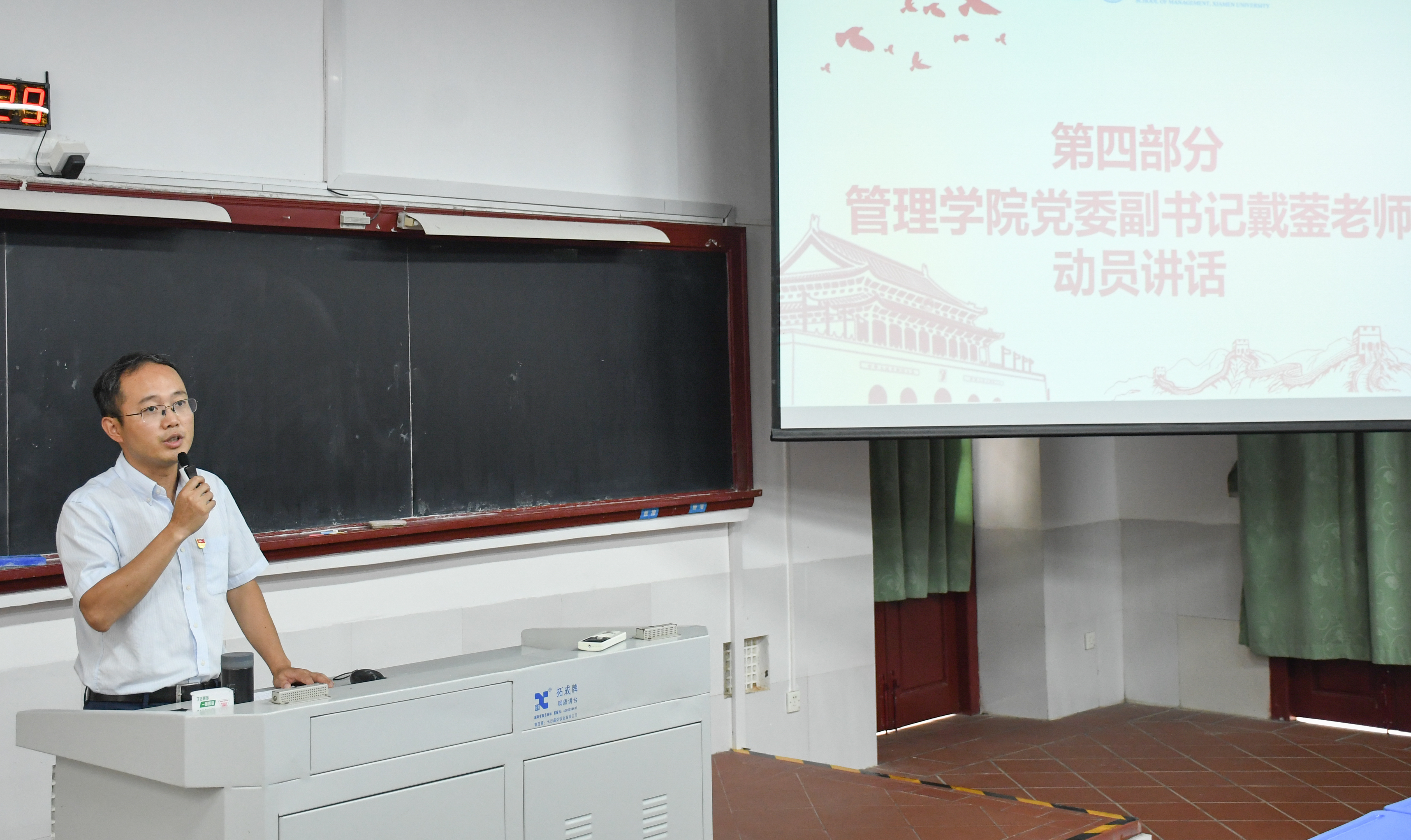 6月2日下午,管理学院2021年暑期社会实践启动仪式暨优秀实践团队经验分享会在群贤二102、105顺利举行,管理学院党委副书记郑碧娇、戴蓥,学院团委书记蒋超杰,学院团委副书记吴荣梅、周颖,辅导员邵亢邑、曹惠真、林麓,往届暑期社会实践优秀团队代表以及学院2020级全体本科生出席本次活动。