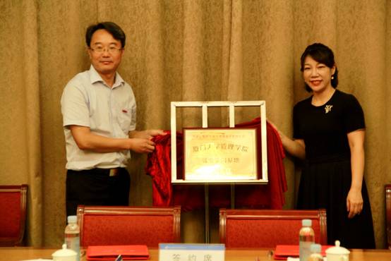 管理学院党委副书记洪秋霞与常熟市城市经营投资有限公司董事长钱瑞龙共同签订了就业实习基地协议。洪秋霞副书记代表学院向常熟市城市经营投资有限公司授牌并致辞。
