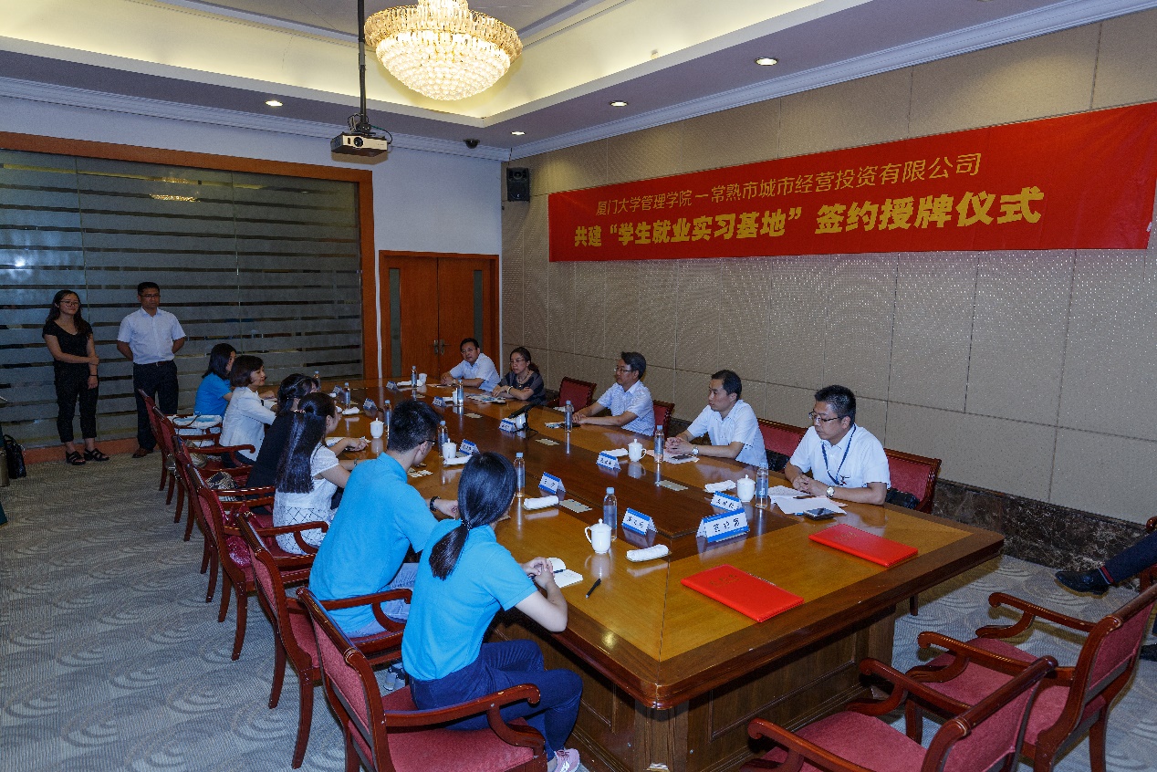 7月26日下午,厦门大学管理学院与常熟市城市经营投资有限公司正式签订学生就业实习基地合作协议。该公司成为我院在常熟的首个校企合作学生就业实习基地,这也是管理学院近年来成立的第19家学生就业实习基地。