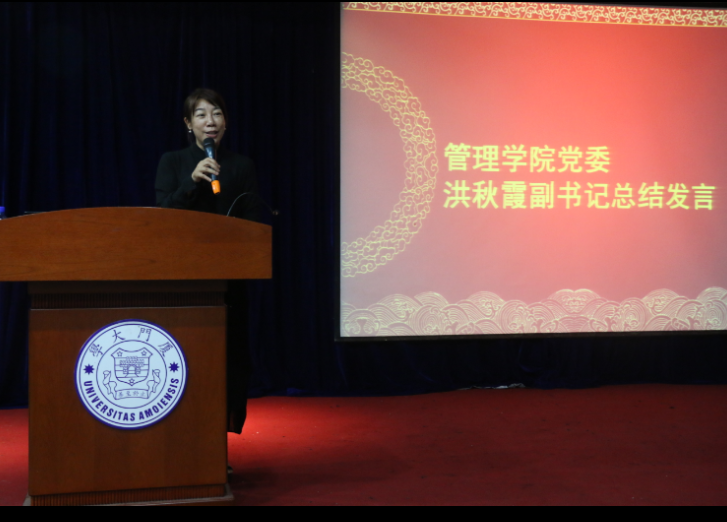 院党委副书记洪秋霞老师在总结讲话中,以“一条路”、“一群人”、“一份希望”为关键词,对过去一学年学生工作情况给予了中肯的评价,并对未来管理学院各学生组织的发展表达了殷切期望。她指出,作为学生干部,要时刻牢记使命,将个人的选择与学院、学校的发展紧密结合,在日常工作中,坚持融入学生群体,将学生组织磨练成为学生所信赖的“小家”。