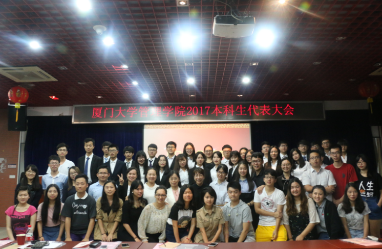 大会还分别通过了《厦门大学管理学院2017年本科生代表大会选举办法》草案和大会监选人名单。学院本科党总支、团总支、学生会、自律会、青年志愿者协会的负责人就各机构的工作开展情况进行了述职报告。五位负责人总结了过去一年各学生组织的工作成果,并回顾了机构成员们之间的点点滴滴。一段段温情故事,令在场师生深感动容。