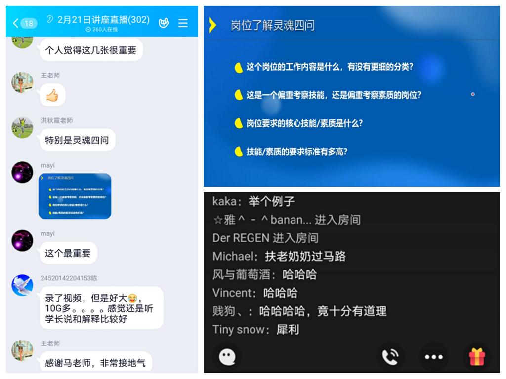 “听了讲座才知道,原来我对HR的工作内容理解一直是错的。”“要是早点听到这些忠告就好了!”同学们反响热烈,获益匪浅。讲座在“主播”与听众的互动答疑中结束。
